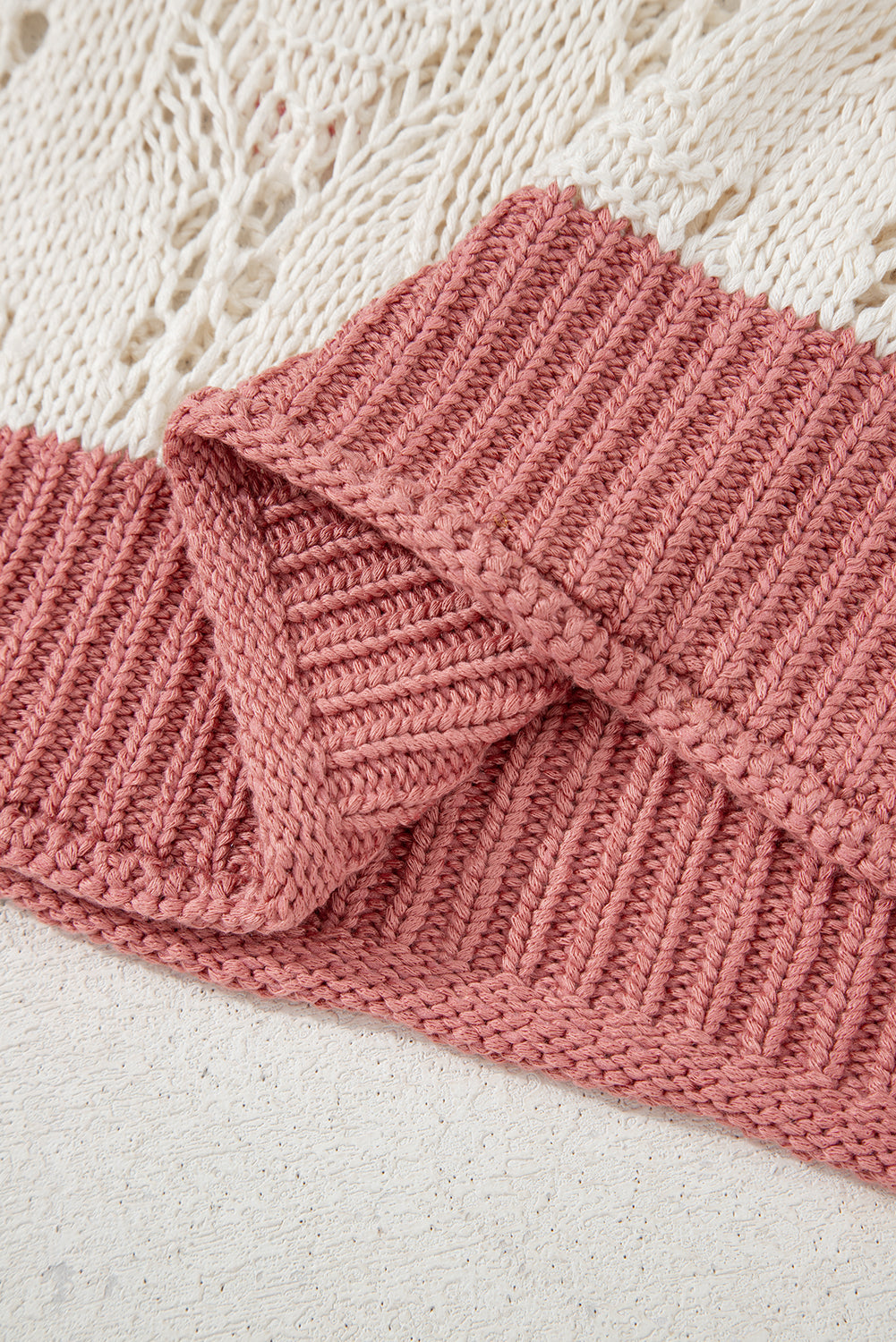 Delicacy Embroidered Flowers Colorblock Edge Hollowed Sweater