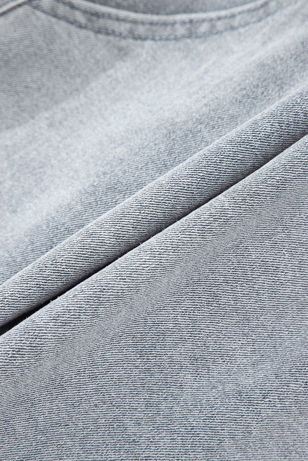 Dusk Blue Scalloped Hemline Acid Wash High Waist Denim Shorts