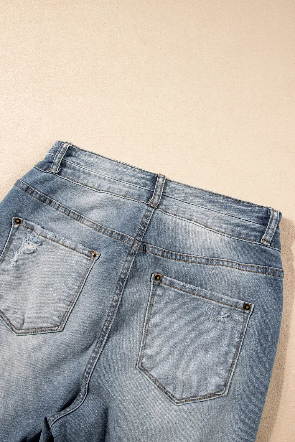 Dusk Blue Vintage Light Wash Ripped Raw Edge Flare Jeans