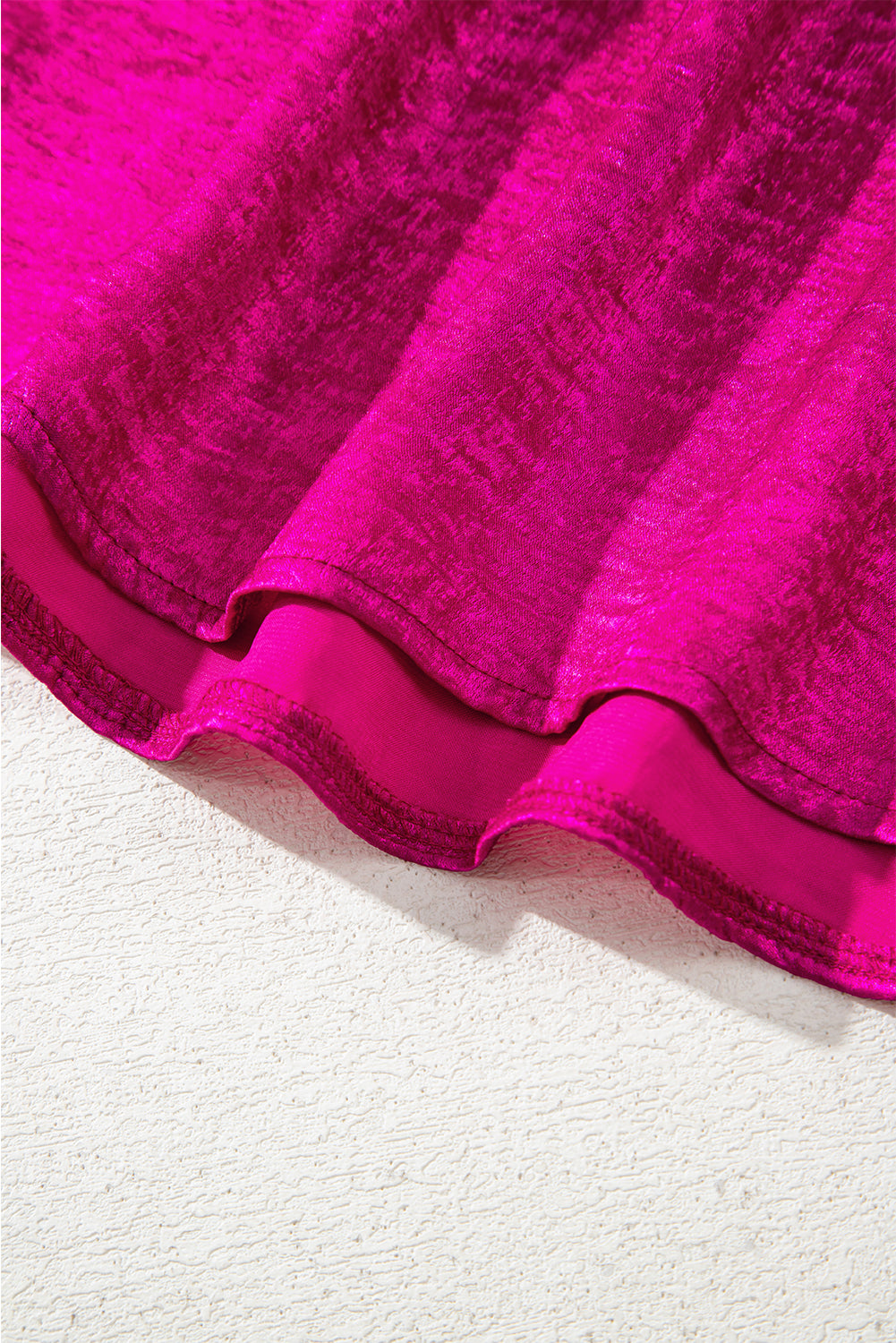 Festival Fuchsia Shine Shimmer Cuffed Short Sleeve Casual Top