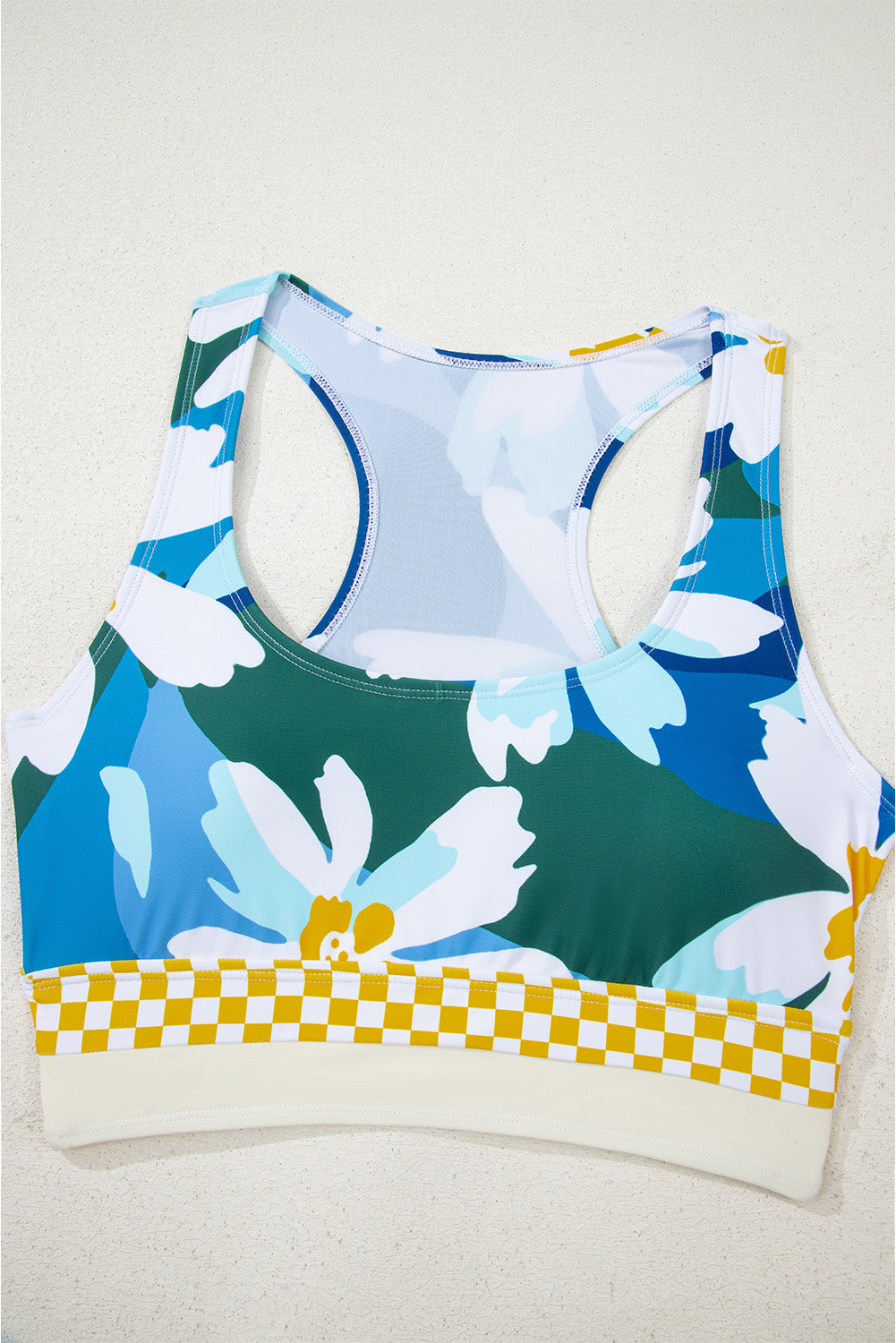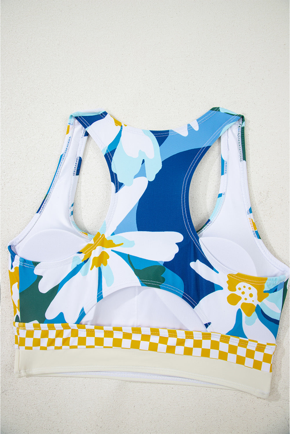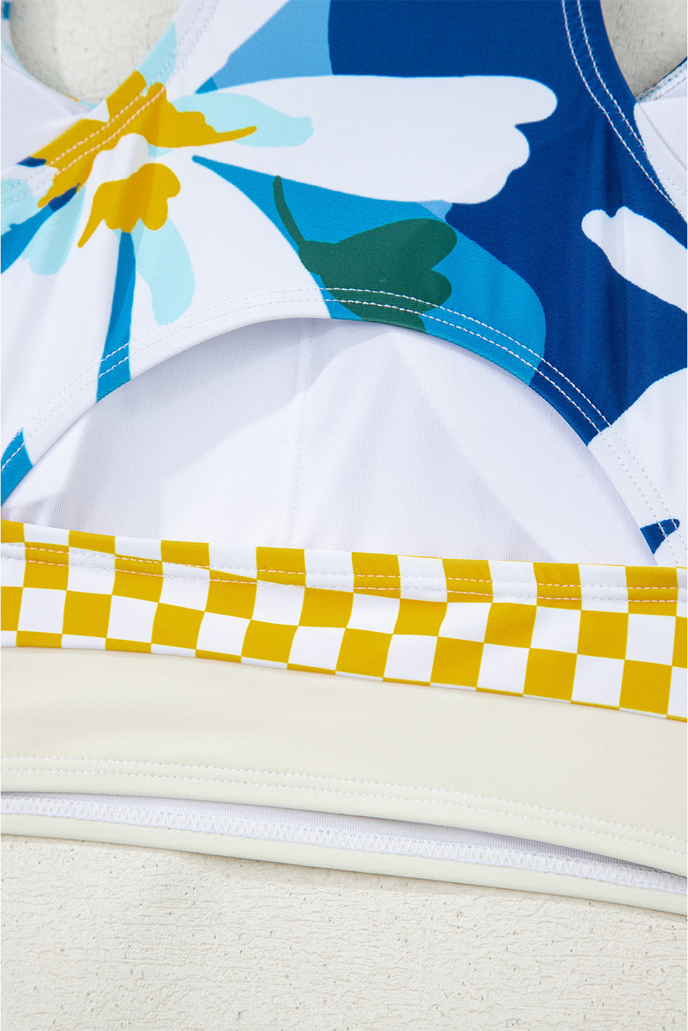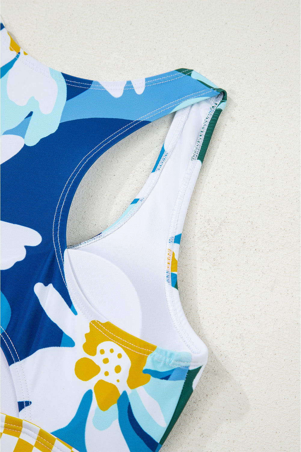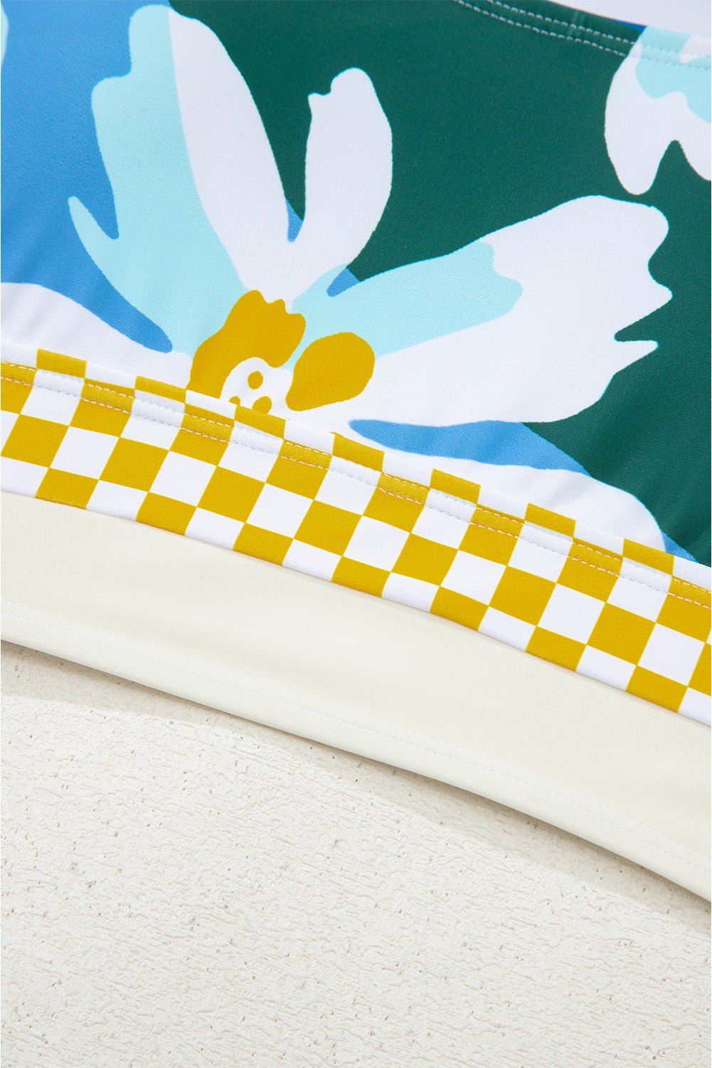 Green Floral Print Racerback Cutout High Waist 2pcs Bikini