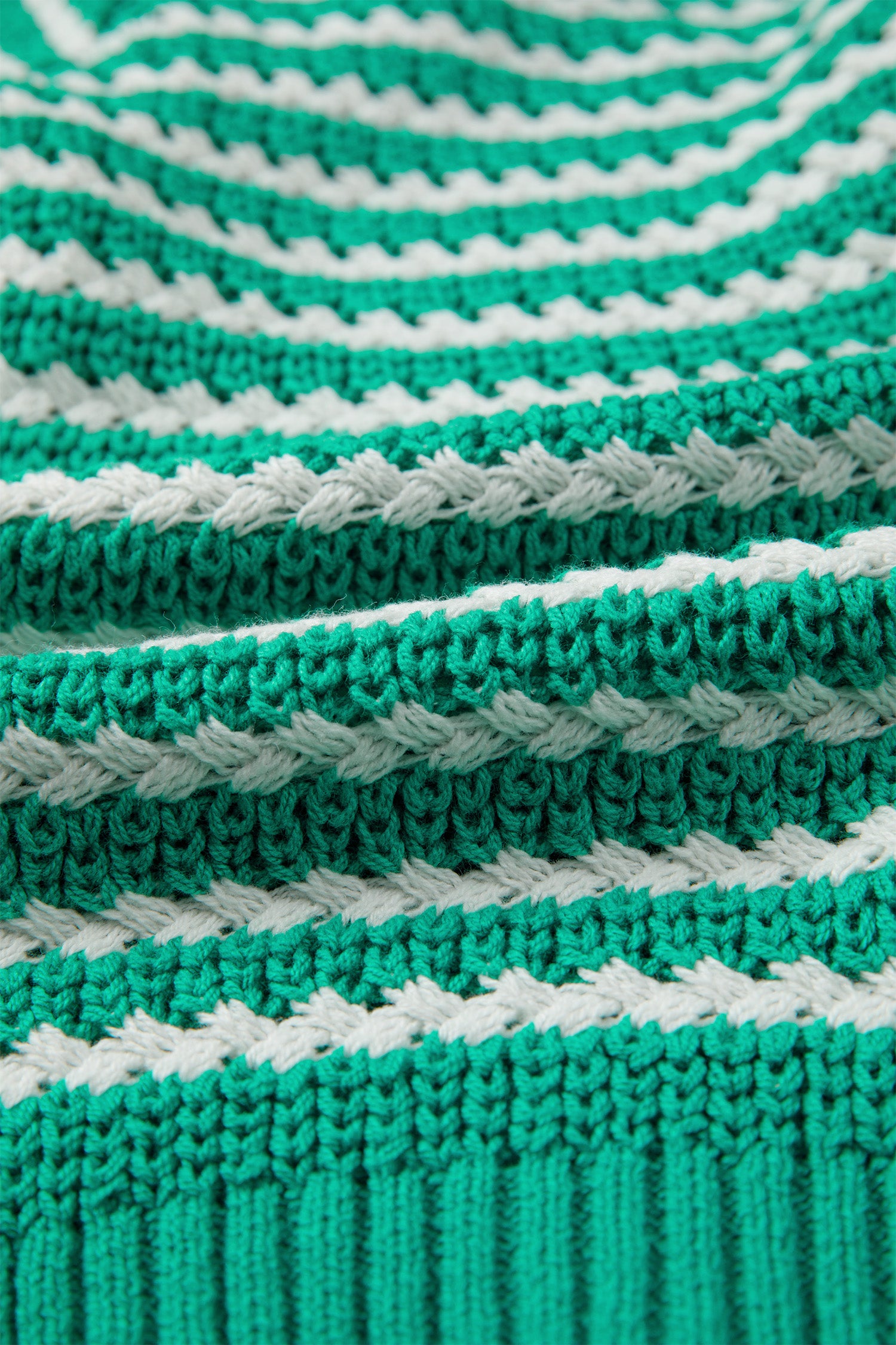 Green Stripe Short Sleeve Knit V Neck Bow Knot Sweater