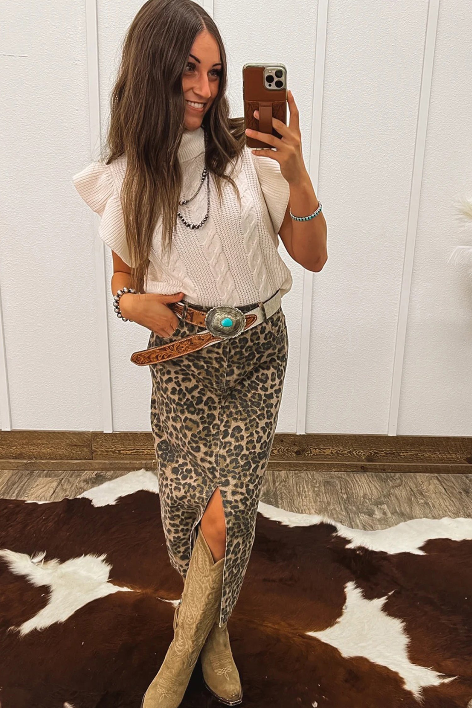 Jet Stream Cable Knit Turtleneck Ruffled Short Sleeve Sweater