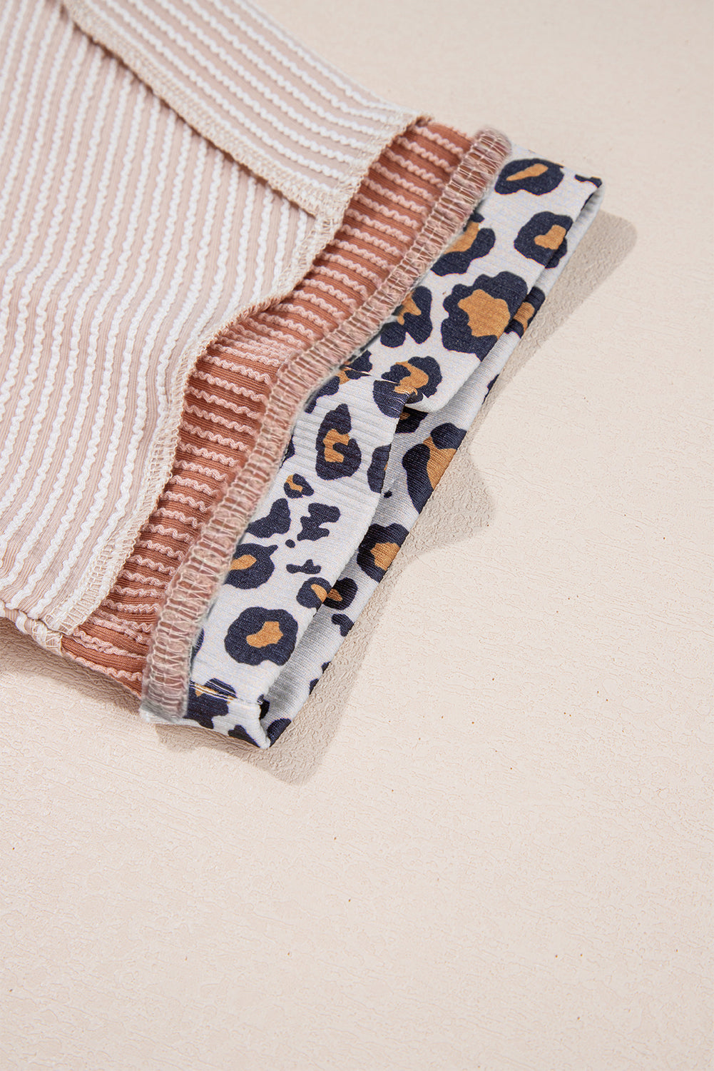 Jet Stream Leopard Patchwork Corded Knit Crew Neck T Shirt