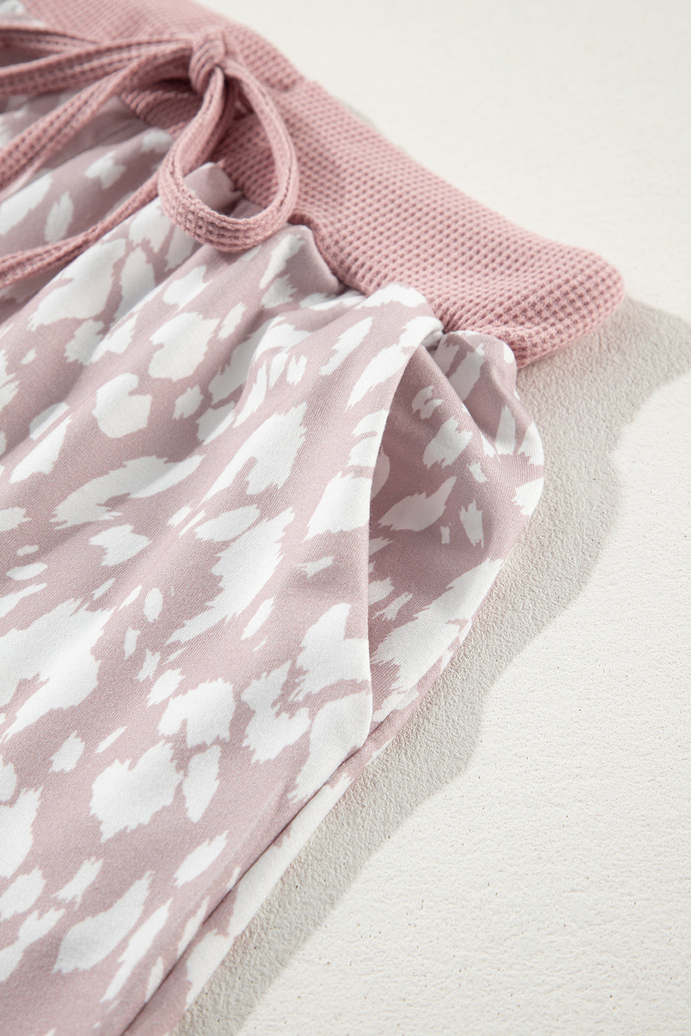 Khaki Classic Leopard Arched Hem Elastic Waist Casual Shorts