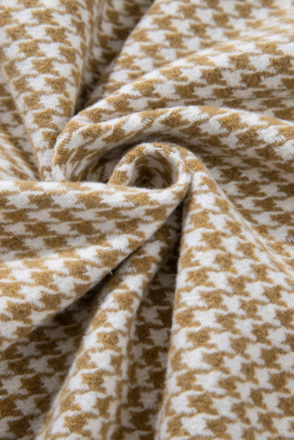 Khaki Houndstooth Color Contrast Textured Patchwork Loose Shacket