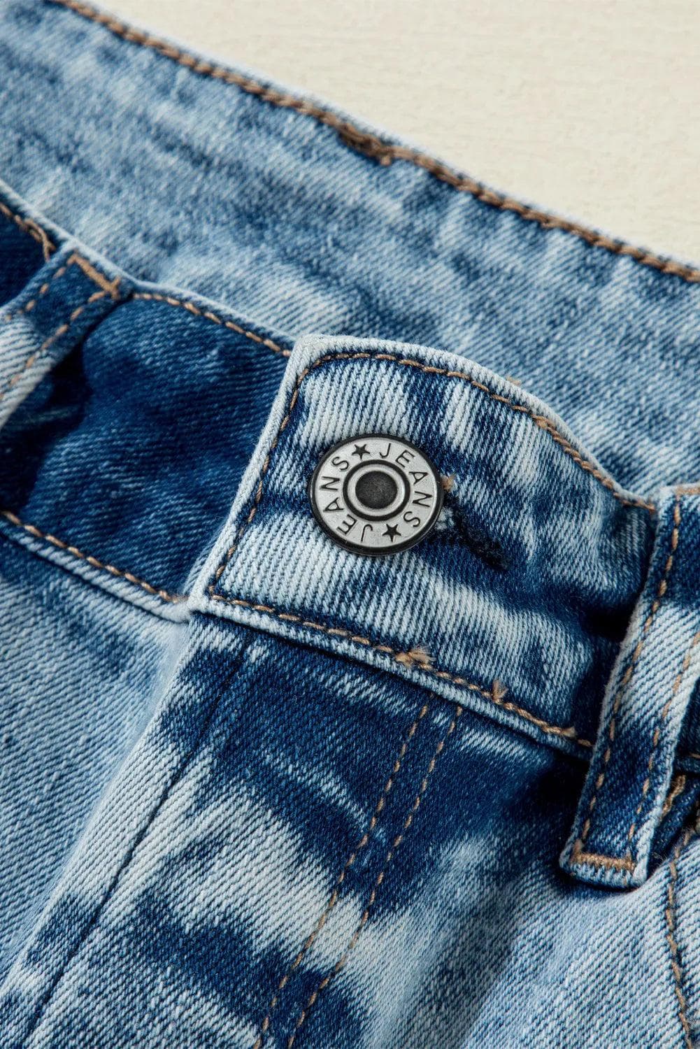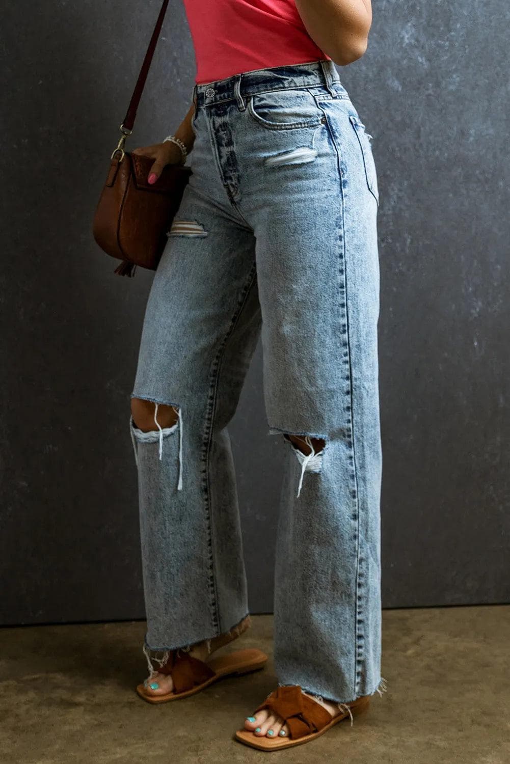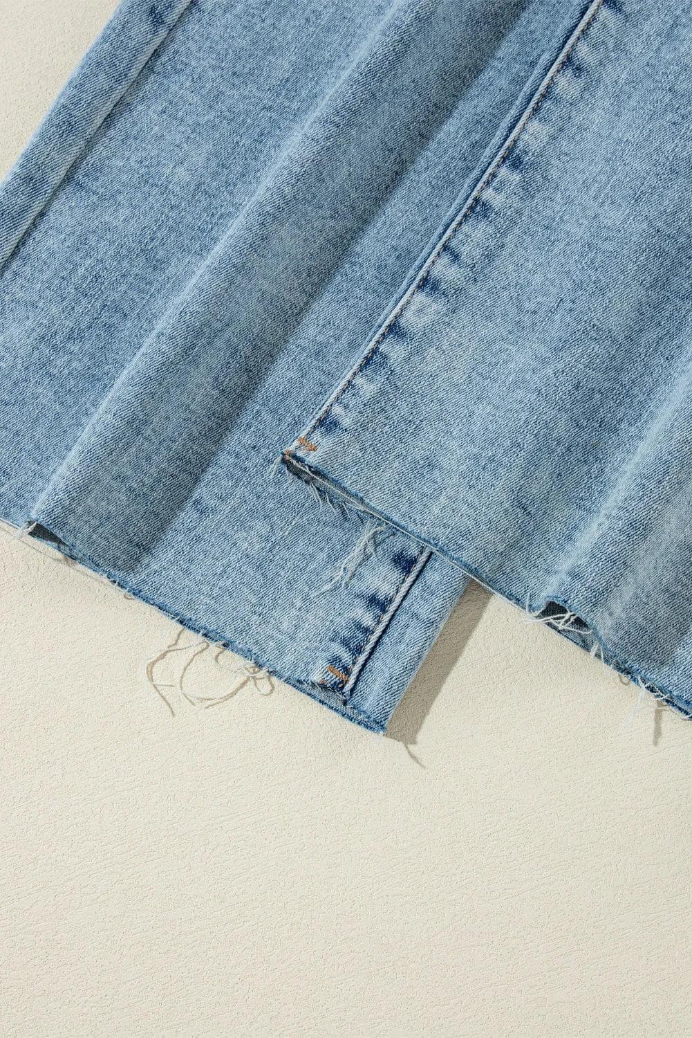 Light Blue Distressed Ripped Raw Hem Straight Jeans