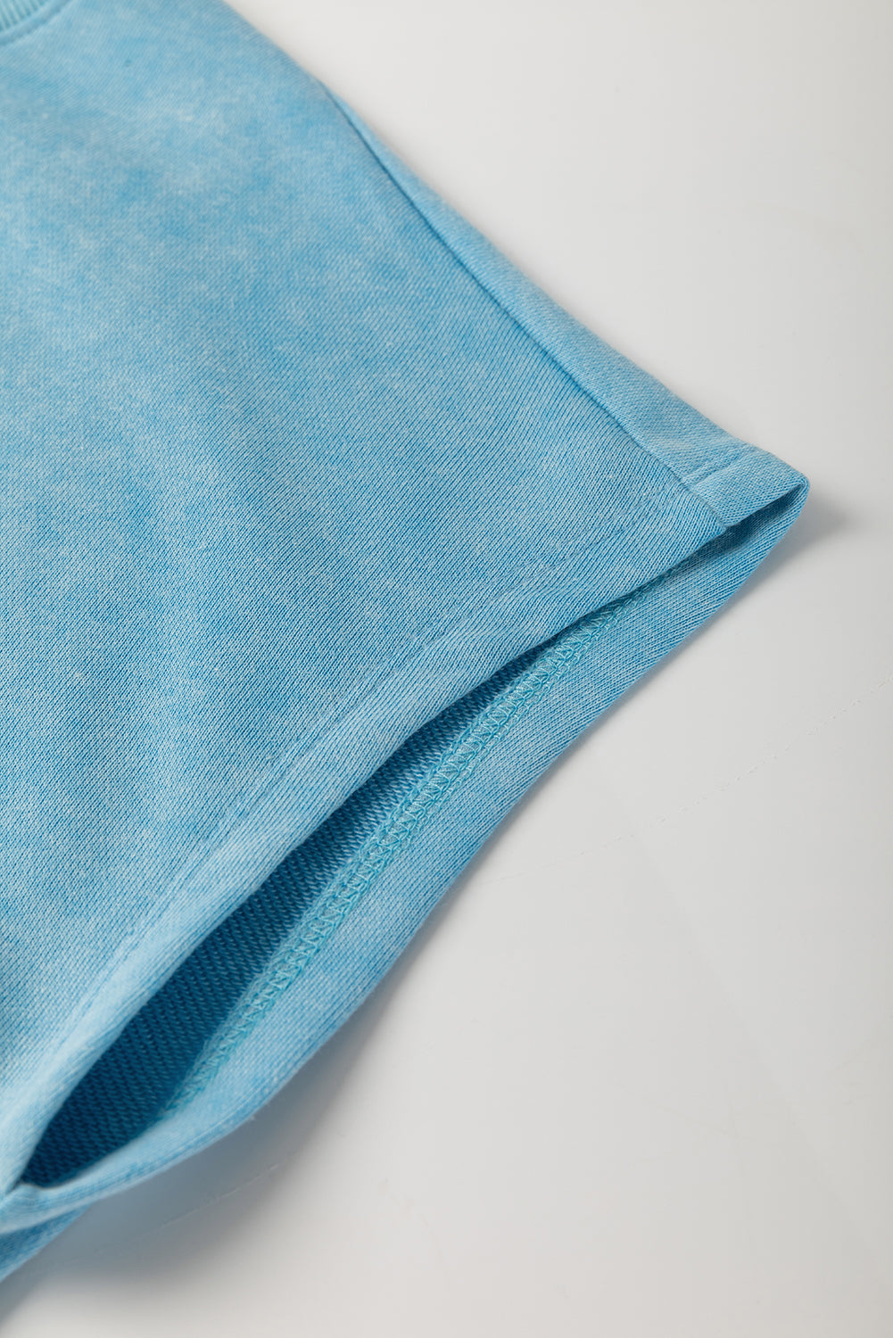 Mist Blue Mineral Wash Drawstring Waist Hollow Out Back Short Sleeve Romper