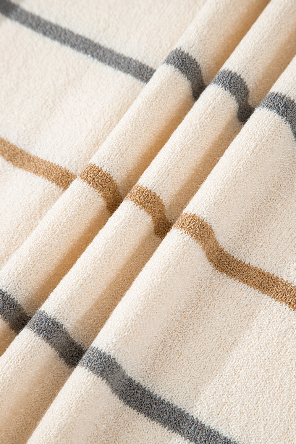 - Classic striped pattern offers timeless appeal with modern oversized styling.