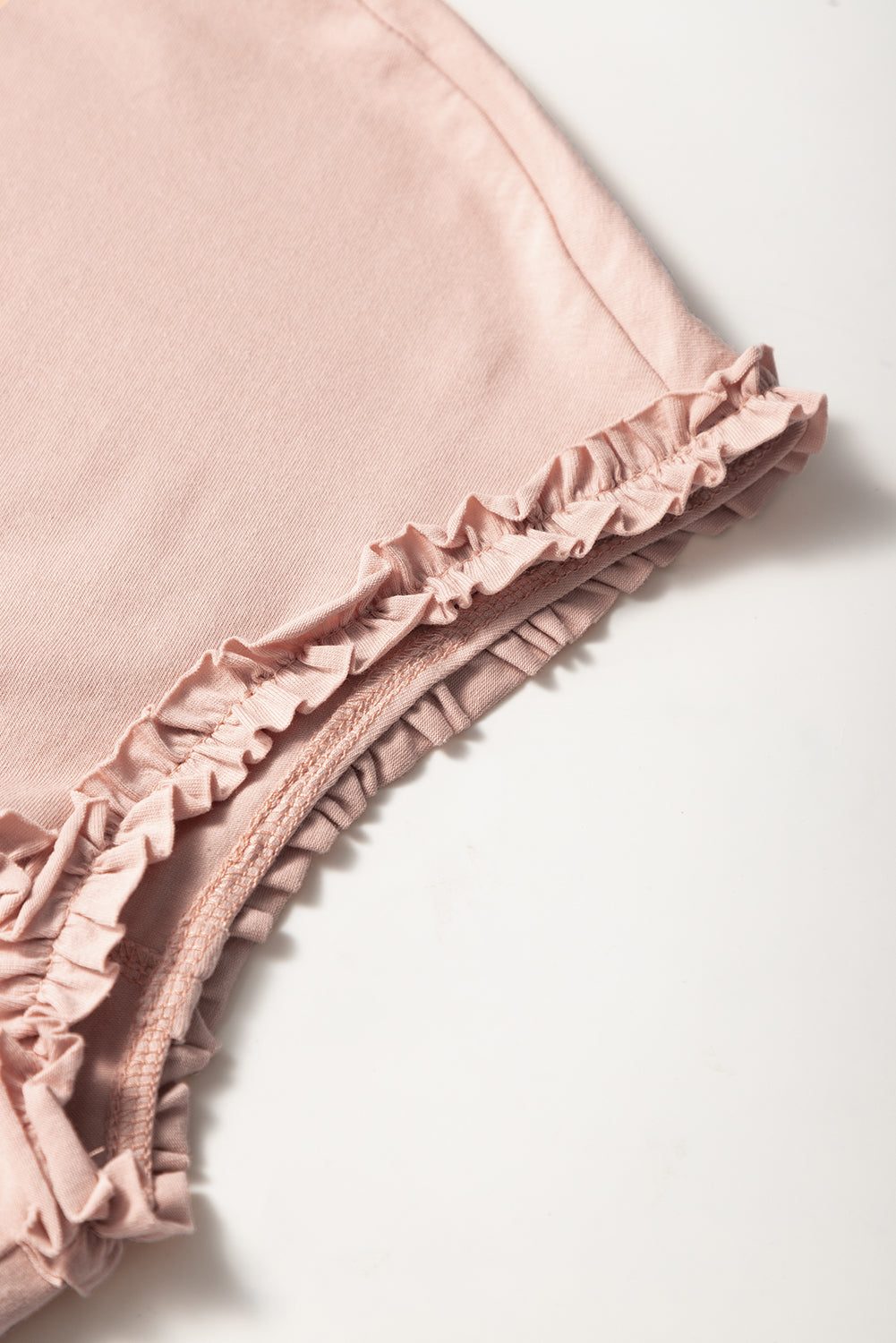 Oatmeal Frilled Trim Crew Neck Loose Fit Mini Dress