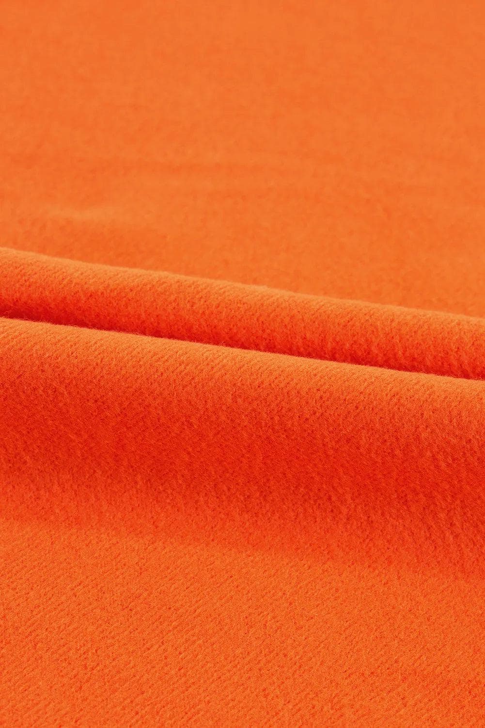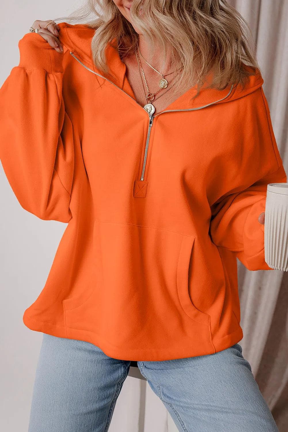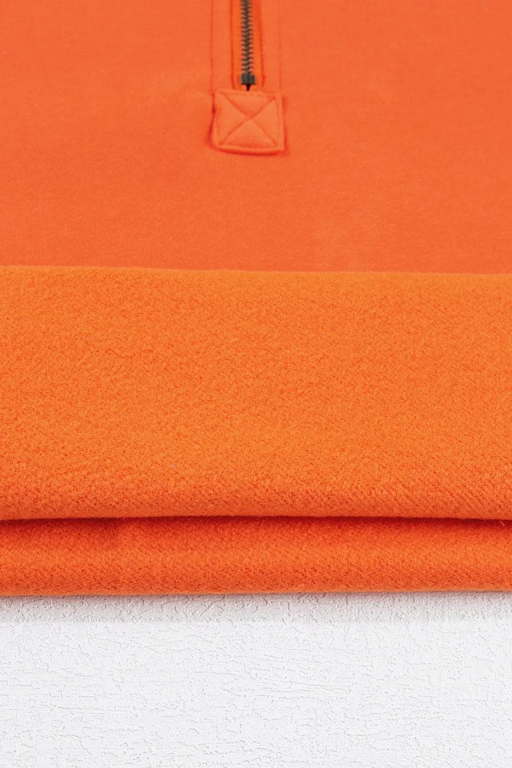 Orange Fleece Lined Half Zipper Kangaroo Pockets Loose Hoodie