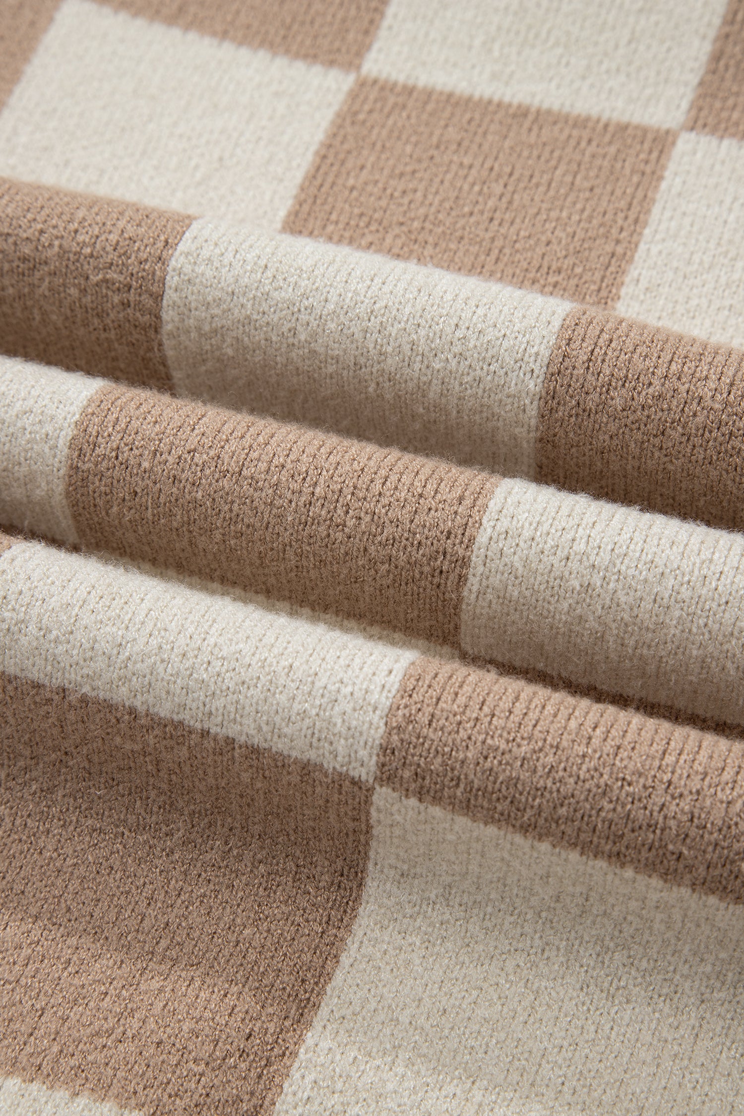 - This chic sweater features a classic checkered pattern.