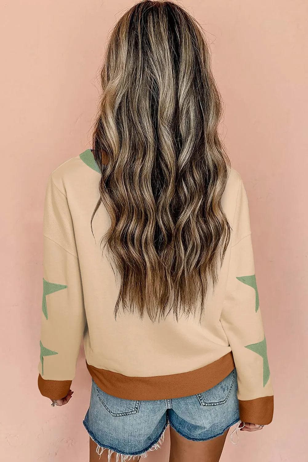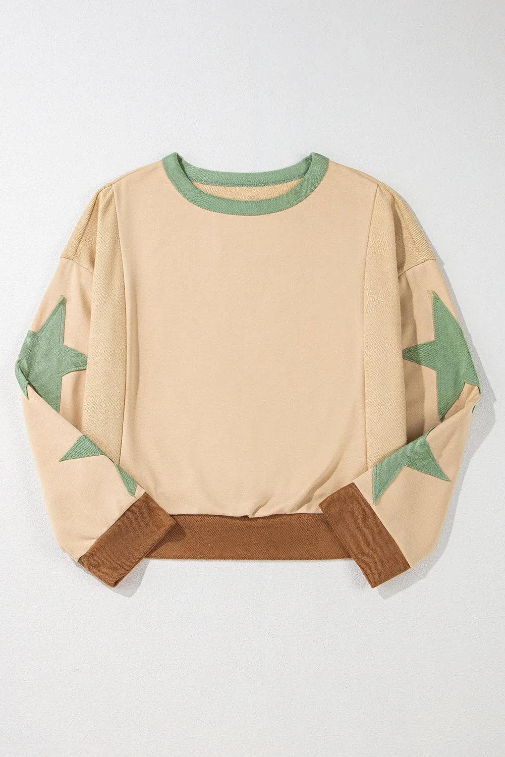 Parchment Star Patchwork Exposed Seam Oversized Sweatshirt