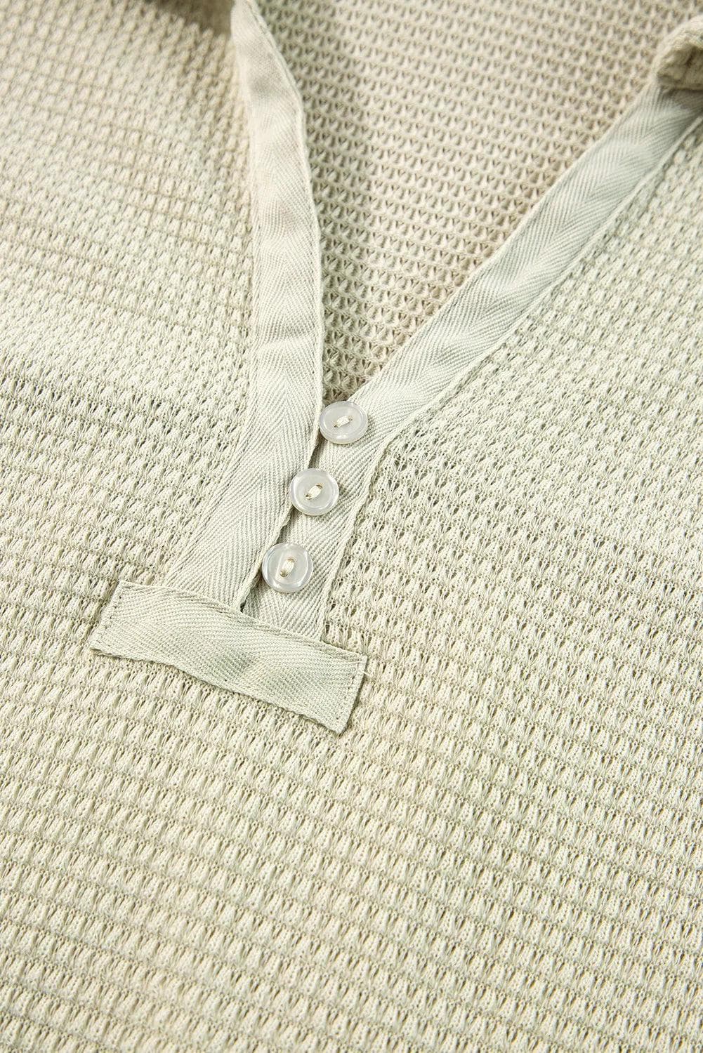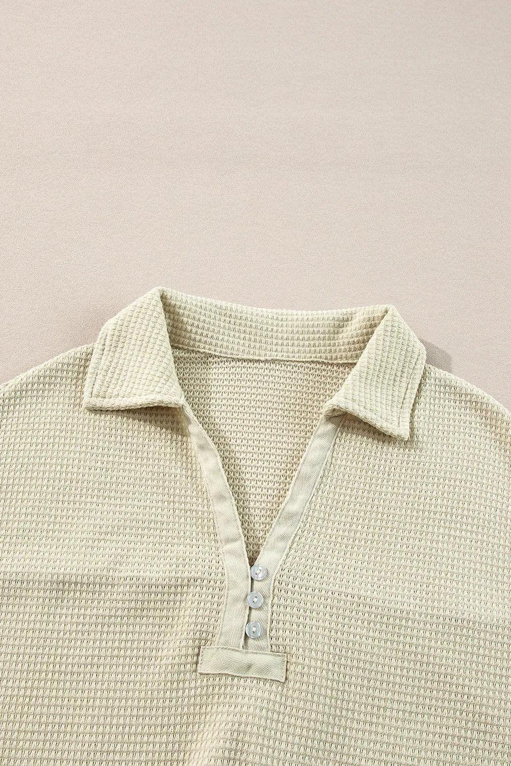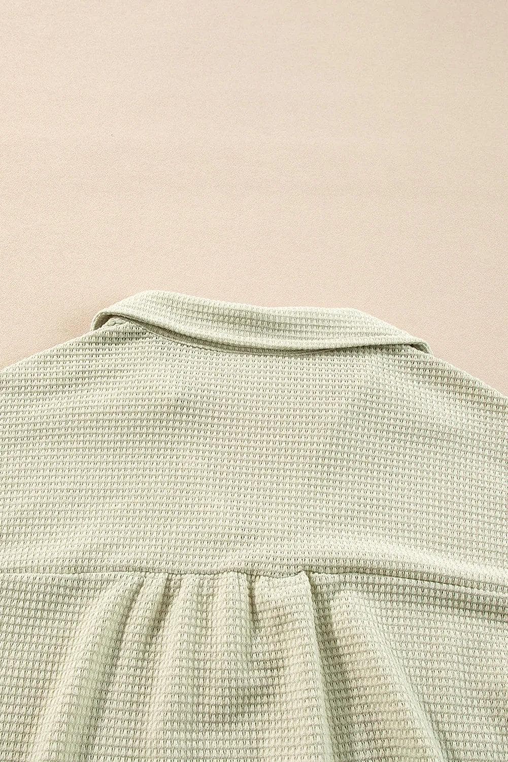 Parchment Textured Buttoned Long Sleeve Top 2 Piece Shorts Set