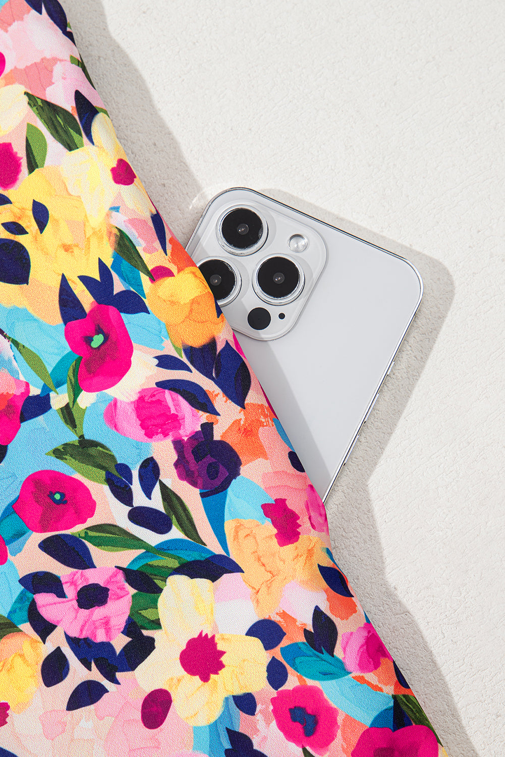 Pink Floral Puff Short Sleeve V Neck Mini Dress