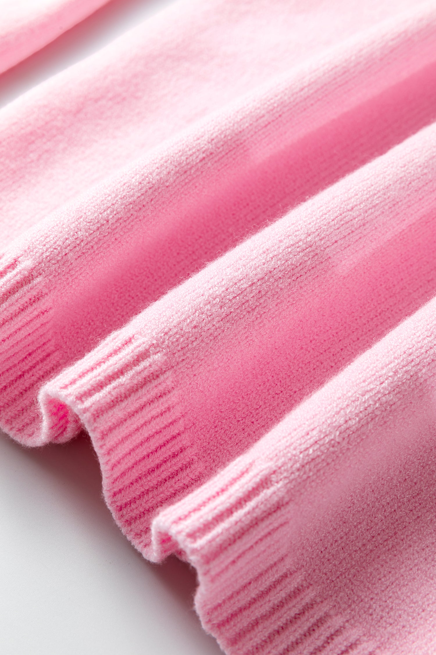 Pink Solid Color Knit Loose Bracelet Sleeve Dolman Sweater
