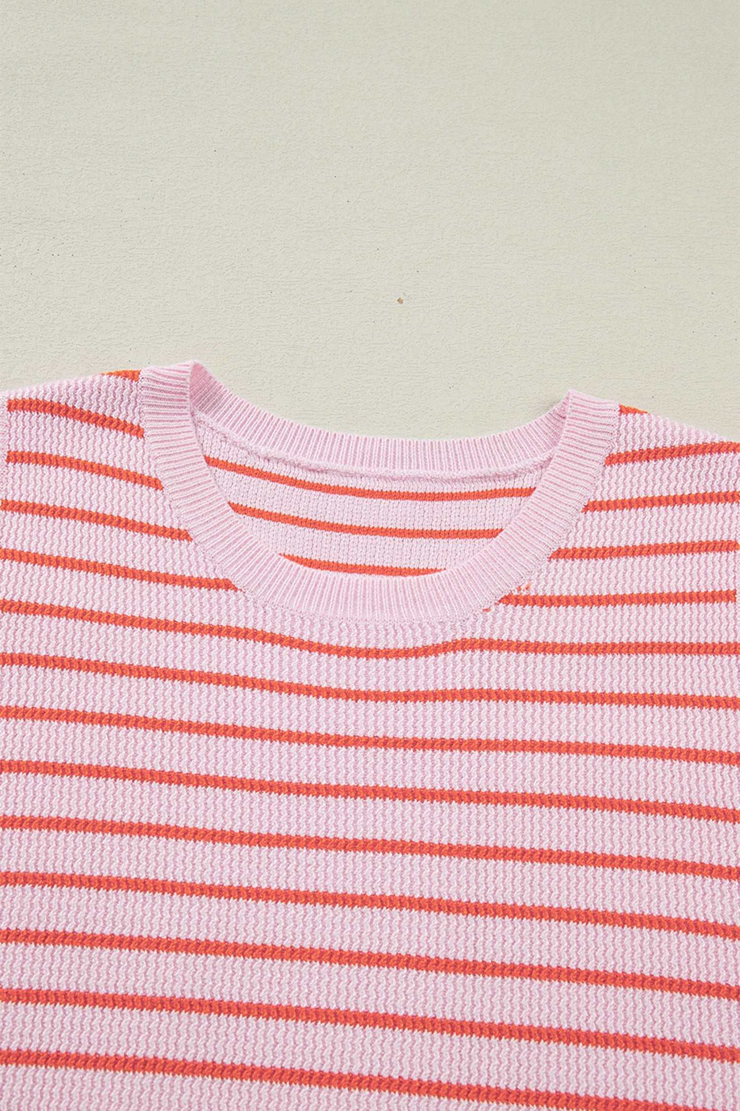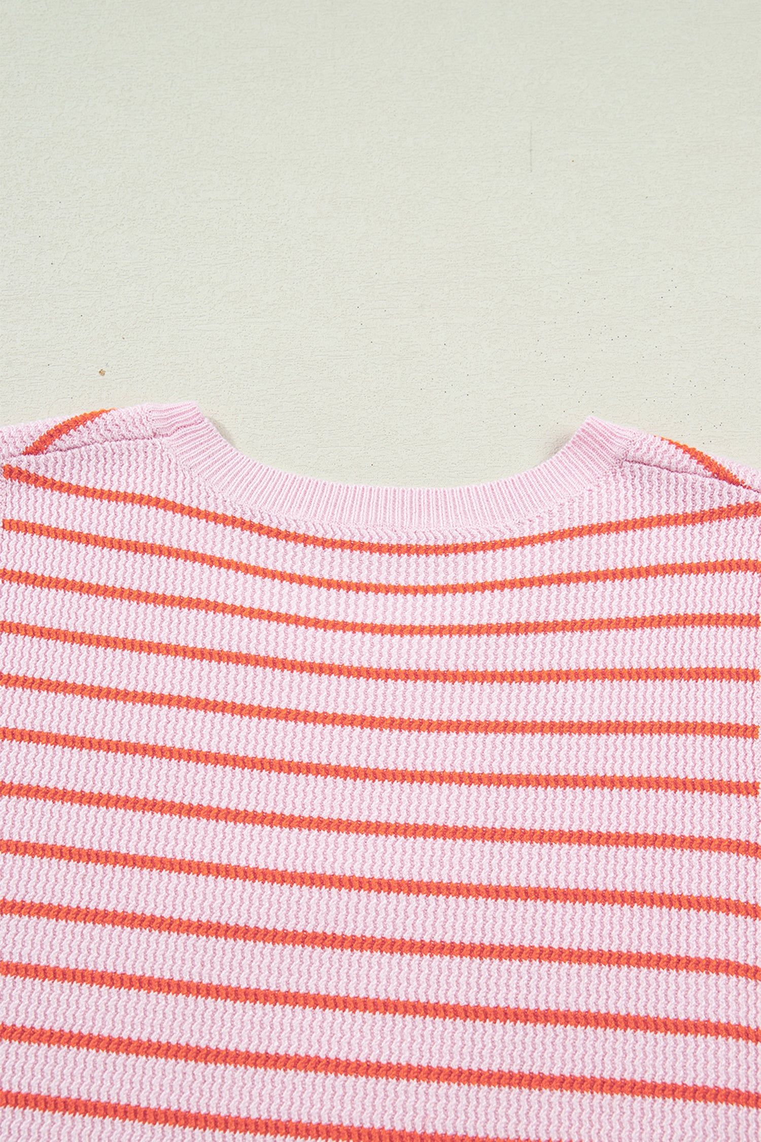 Pink Stripe Textured Knit Sleeveless Casual Sweater Top