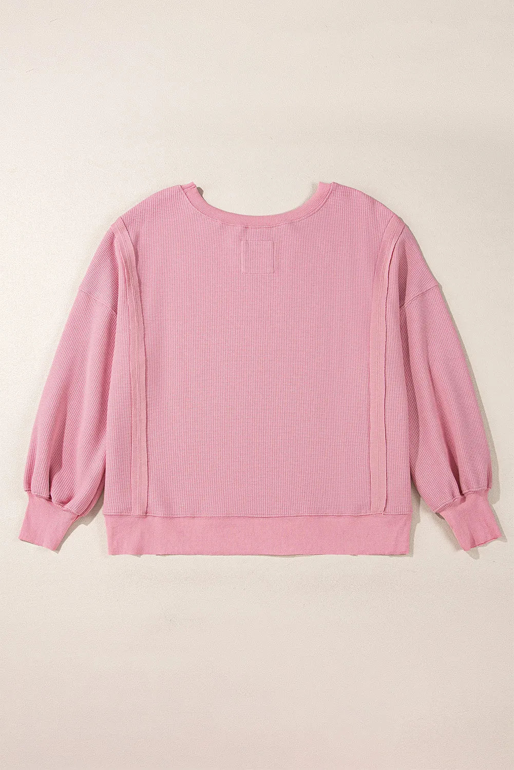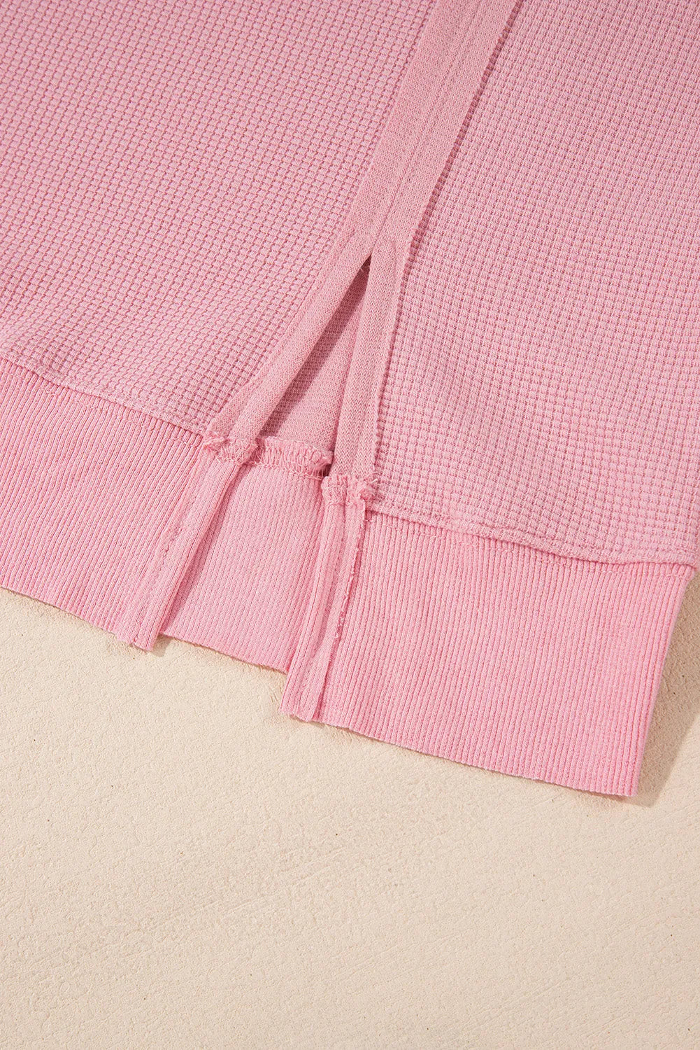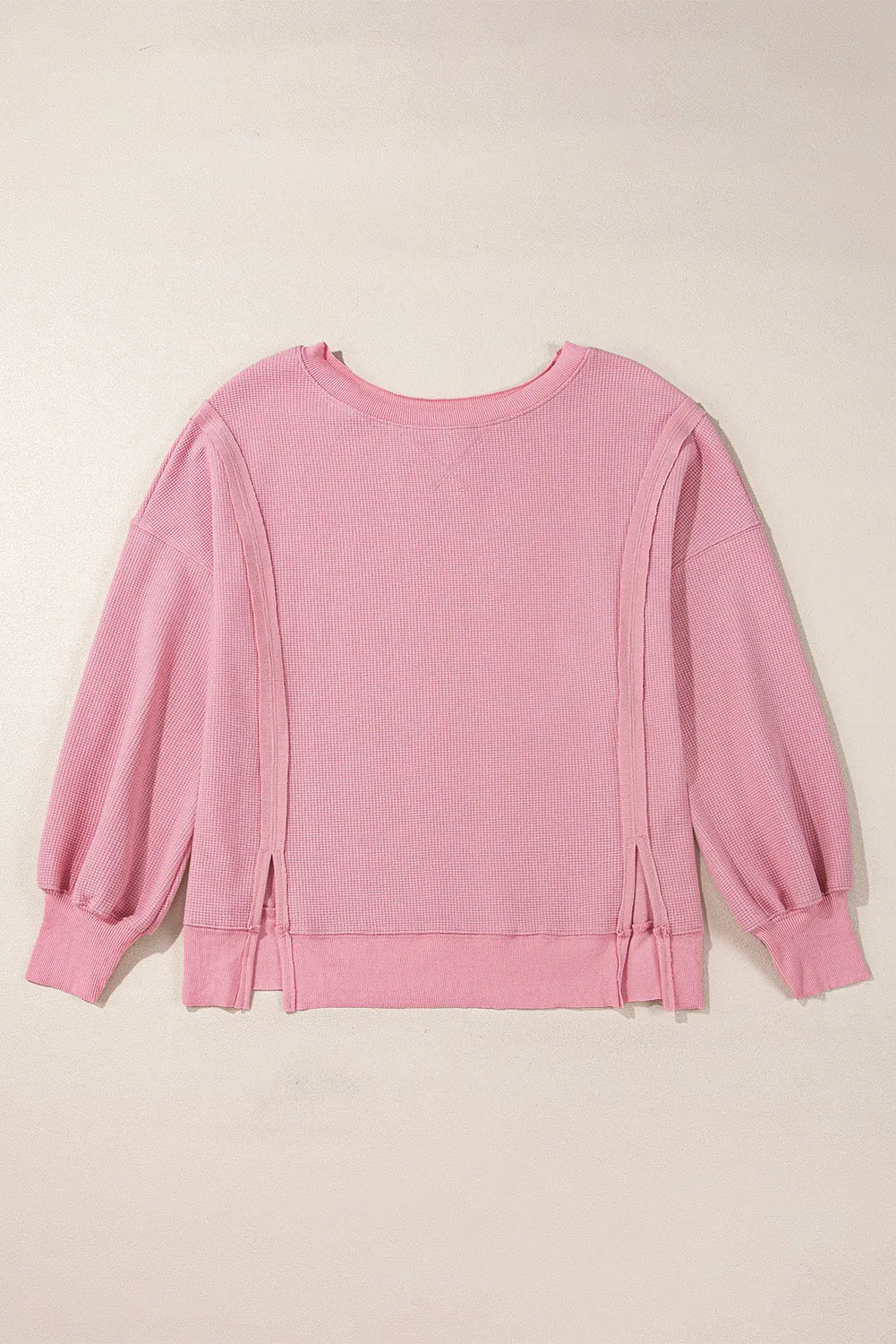 Pink Waffle Knit Bishop Sleeve Split Oversized Sweatshirt