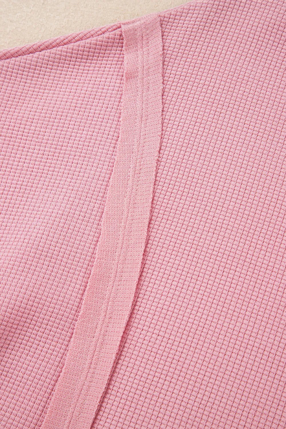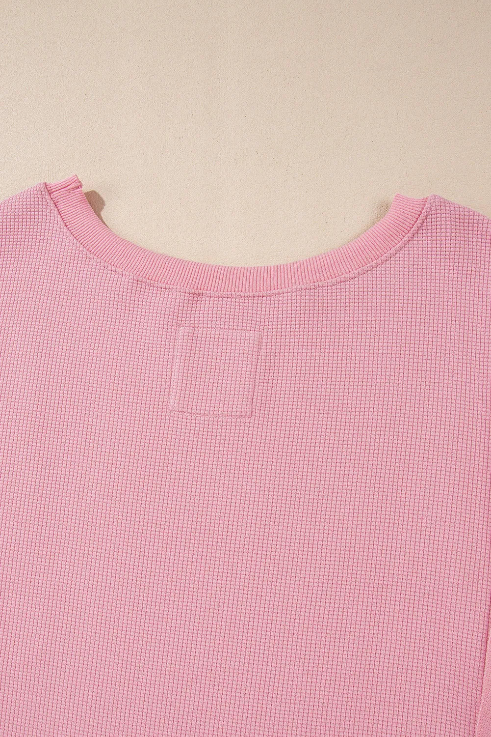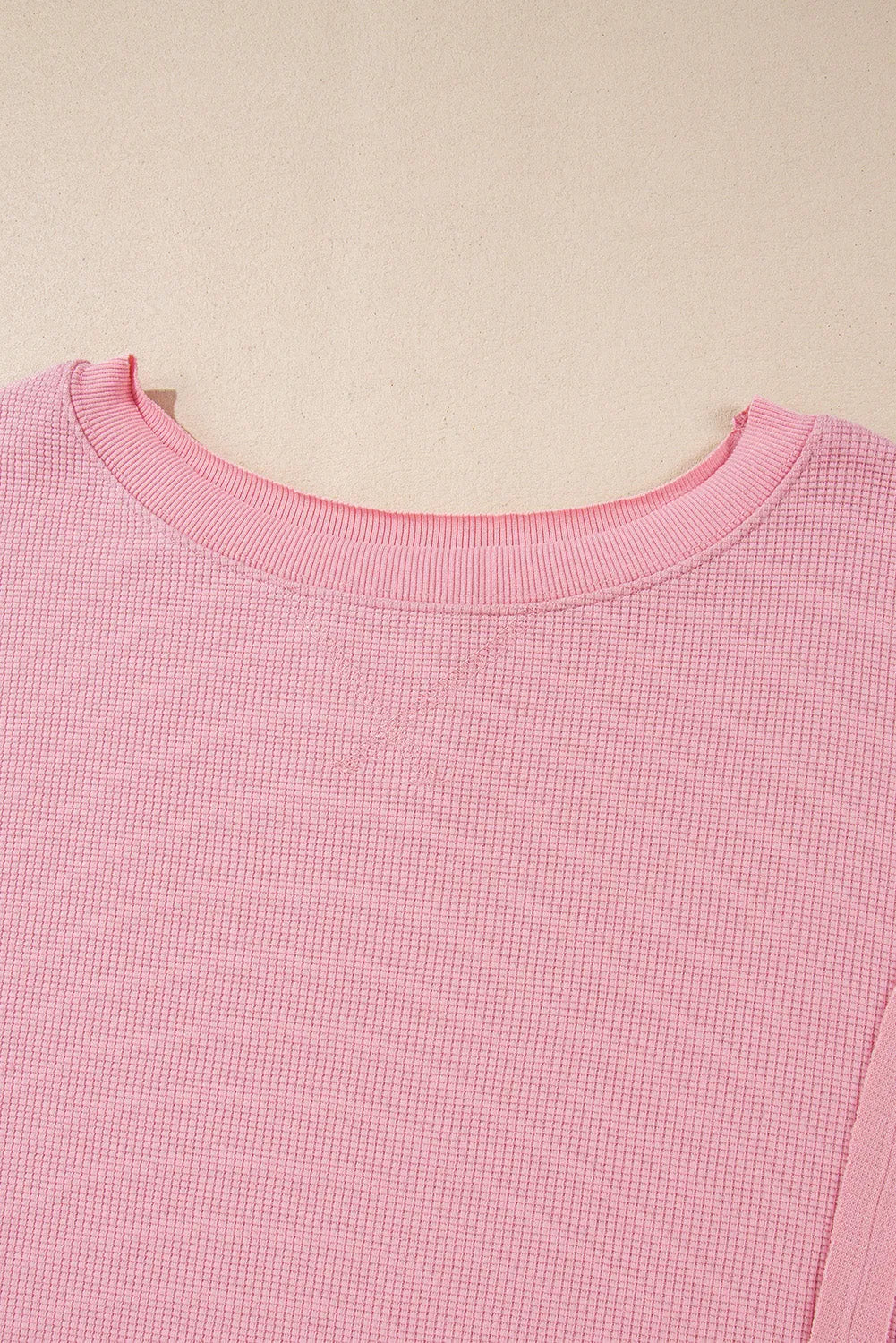 Pink Waffle Knit Bishop Sleeve Split Oversized Sweatshirt