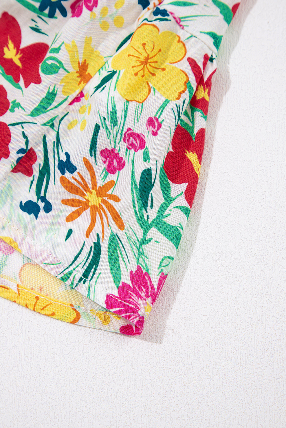 Red Floral Knotted Straps Cinched Waist Ruffle Hem Mini Dress