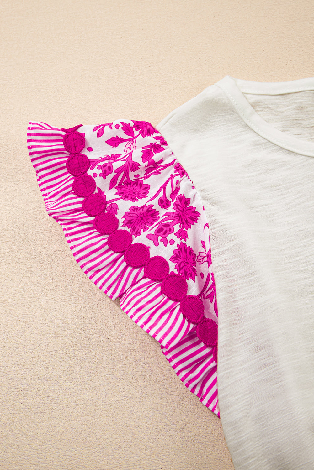 Rose Ricrac Trim Printed Flutter Sleeve Contrast Patchwork Blouse