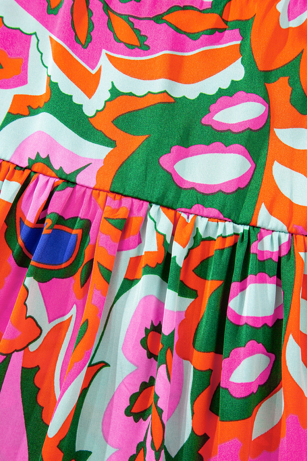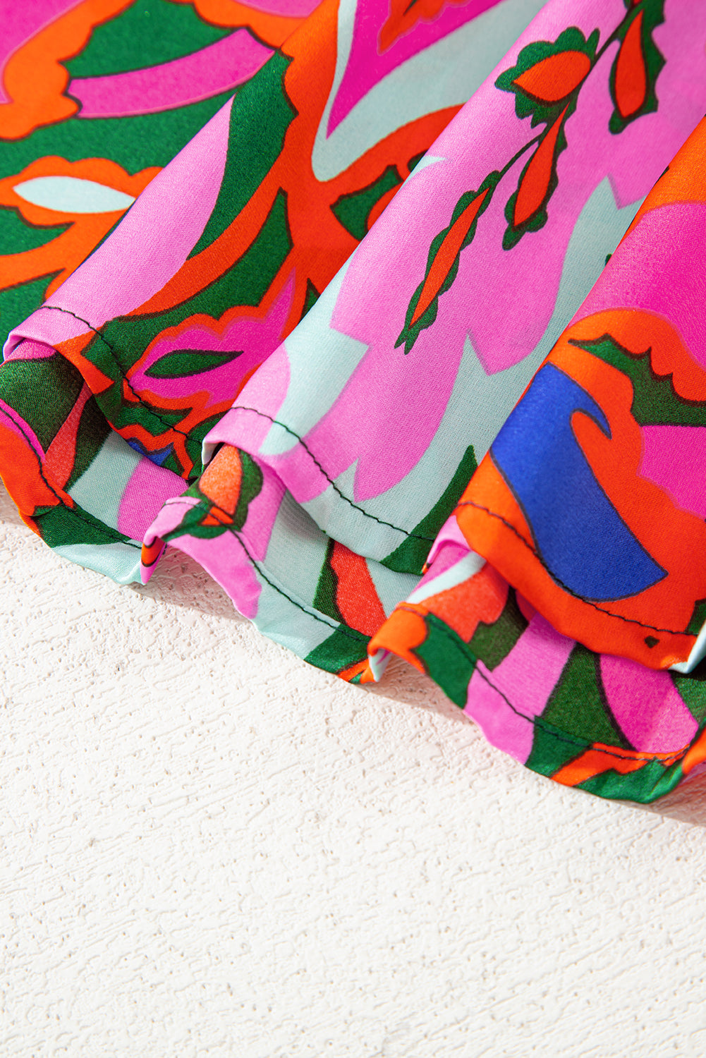 Rose Summer Plant Print Lace up V Neck Short Sleeve Blouse