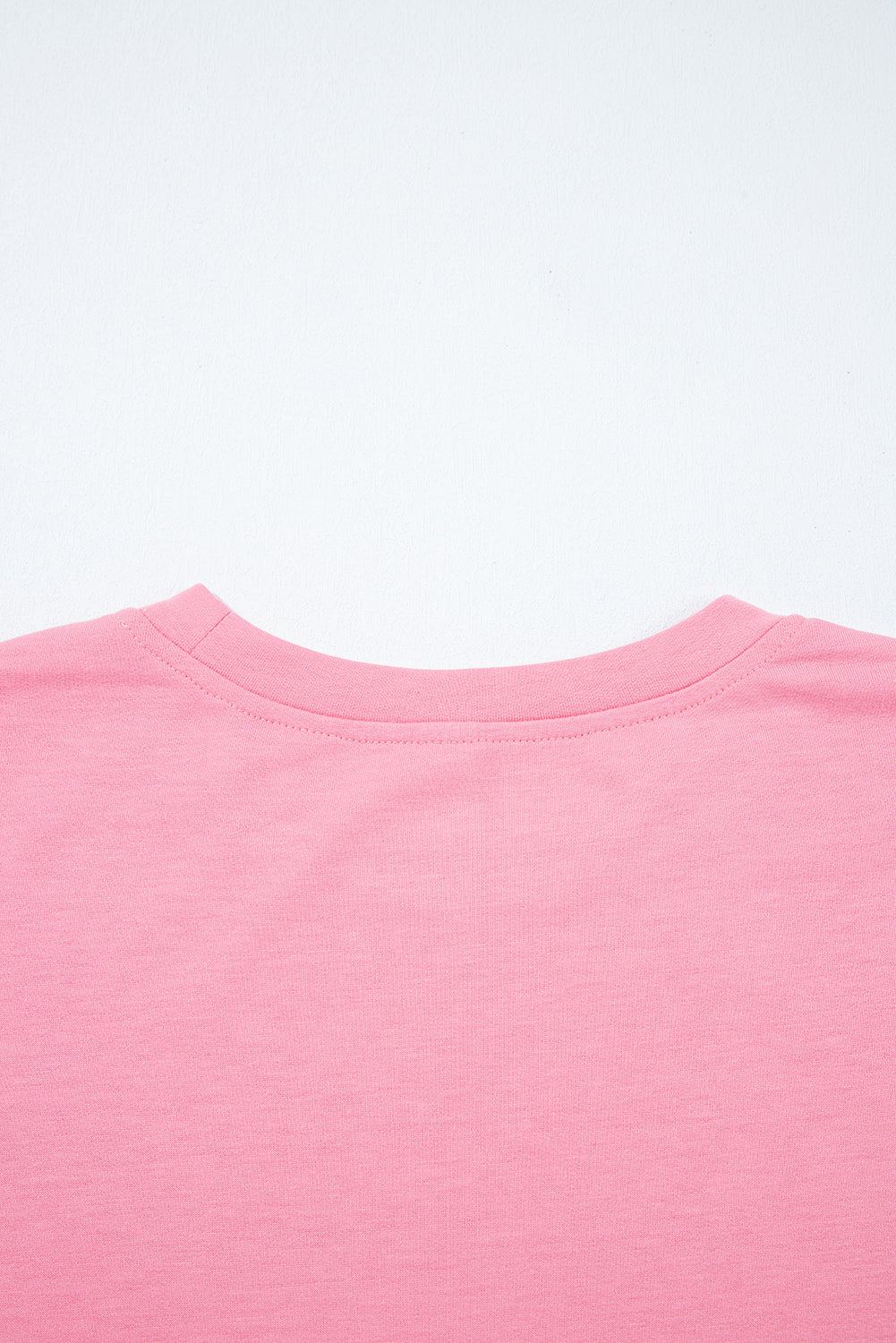 Sachet Pink Drop Shoulder Lace Ruffled Sleeve Patchwork Loose Sweatshirt