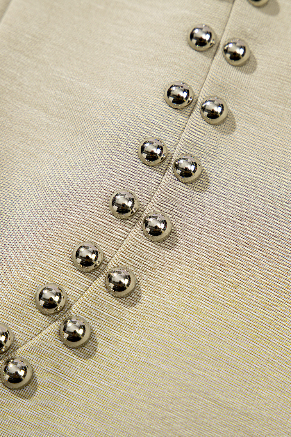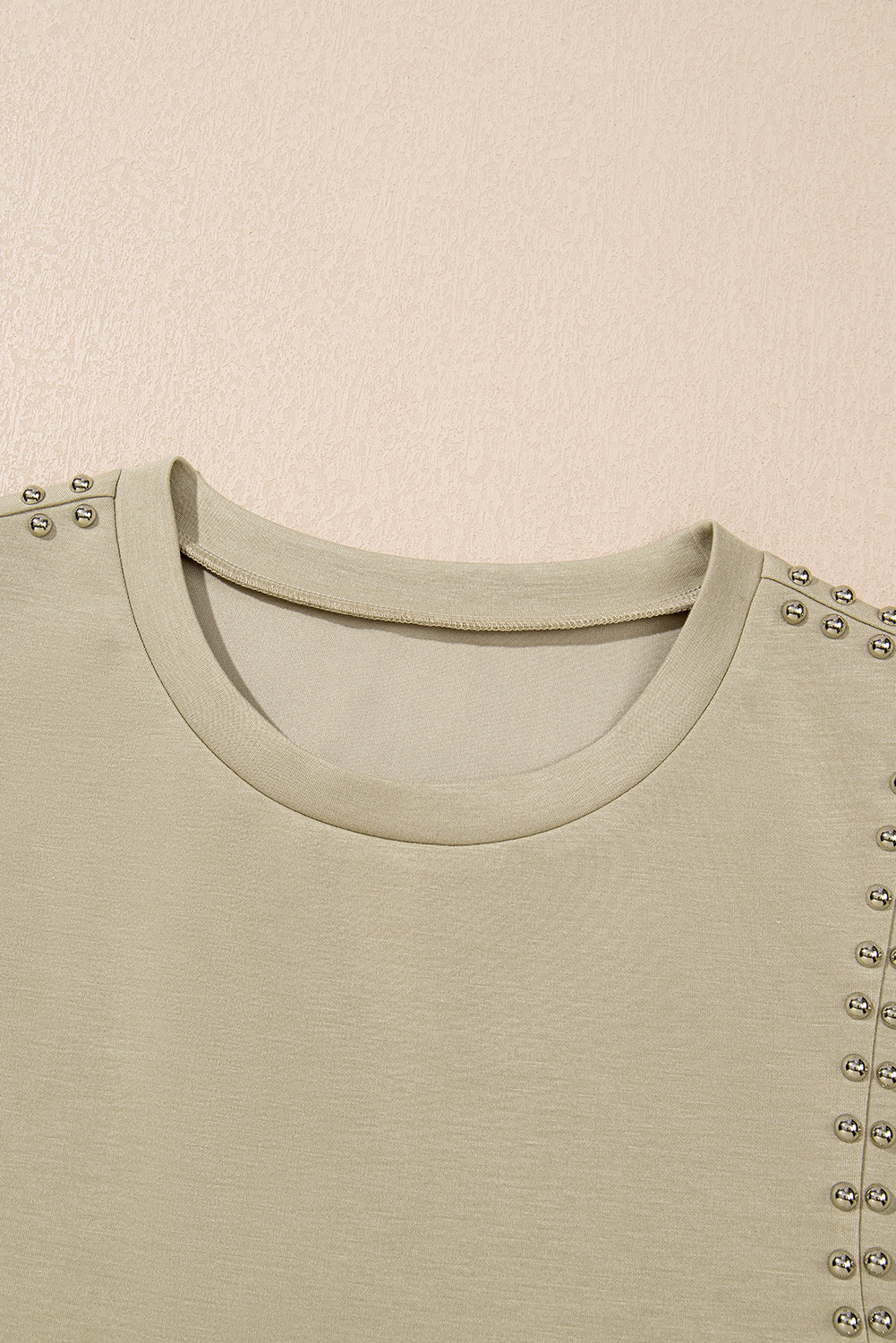 Sage Green Studded Cap Sleeve Round Neck T Shirt