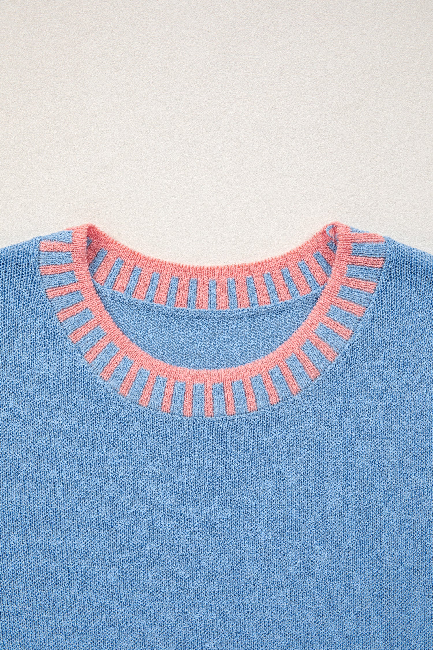 Sky Blue Contrast Trim Round Neck Sleeveless Sweater