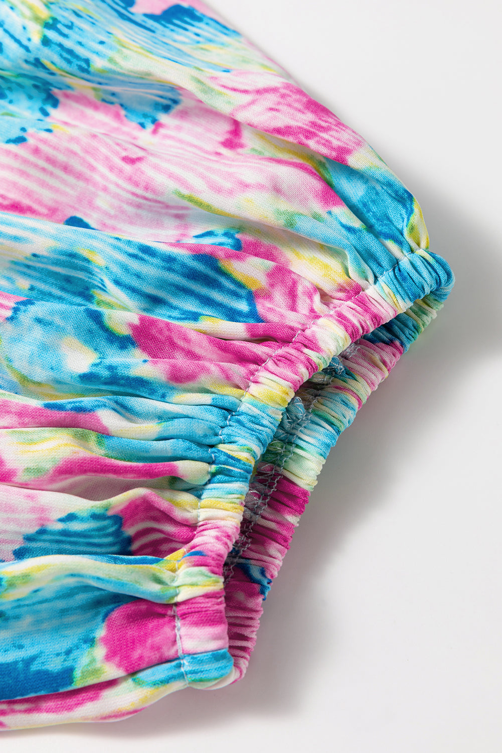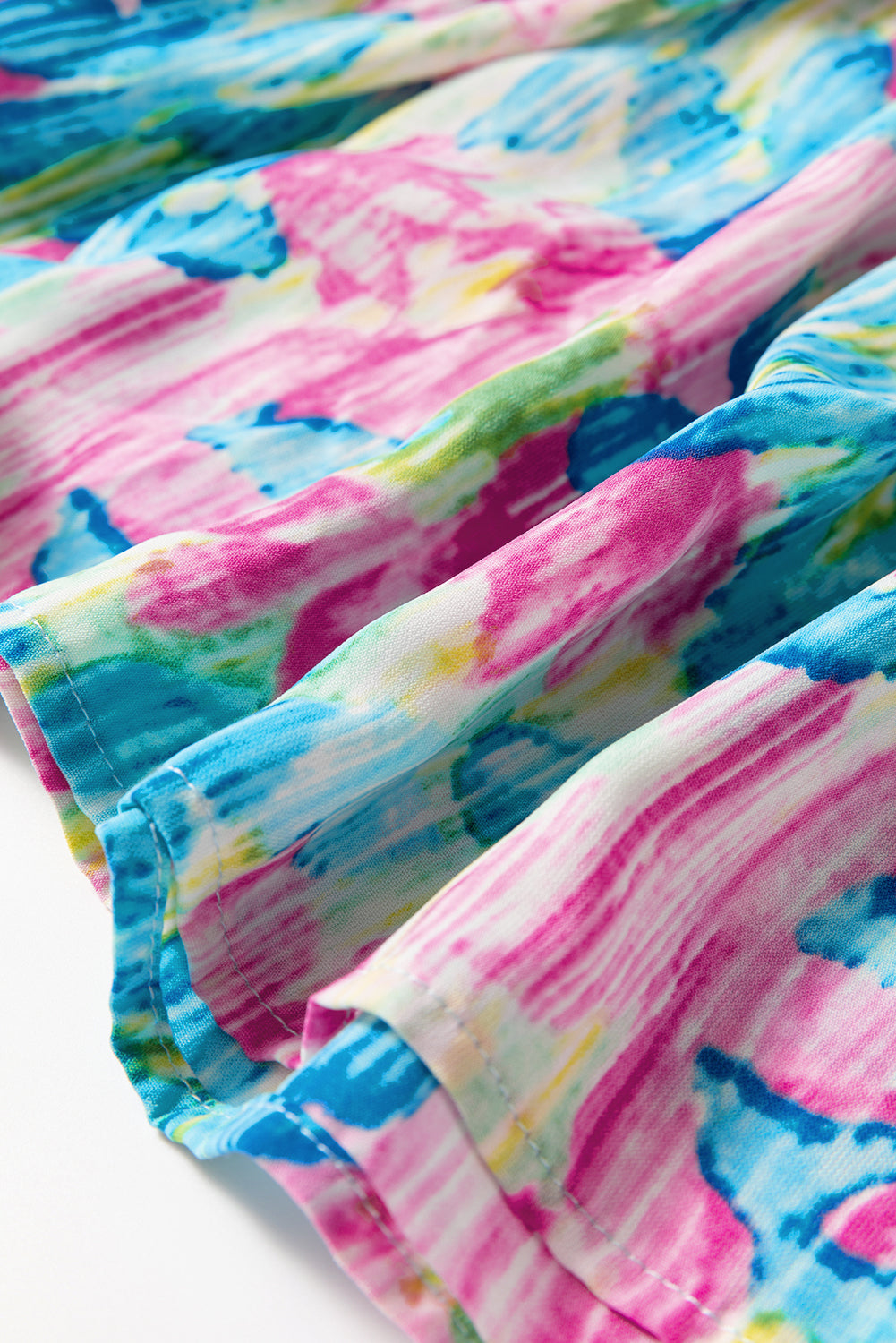 Sky Blue Floral Allover Print Shirred Square Neck Plus Size Maxi Dress
