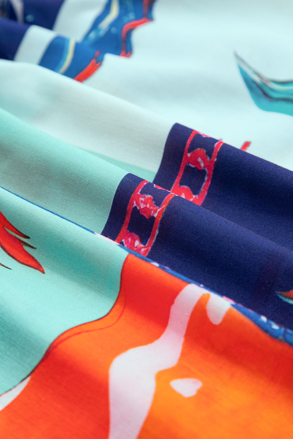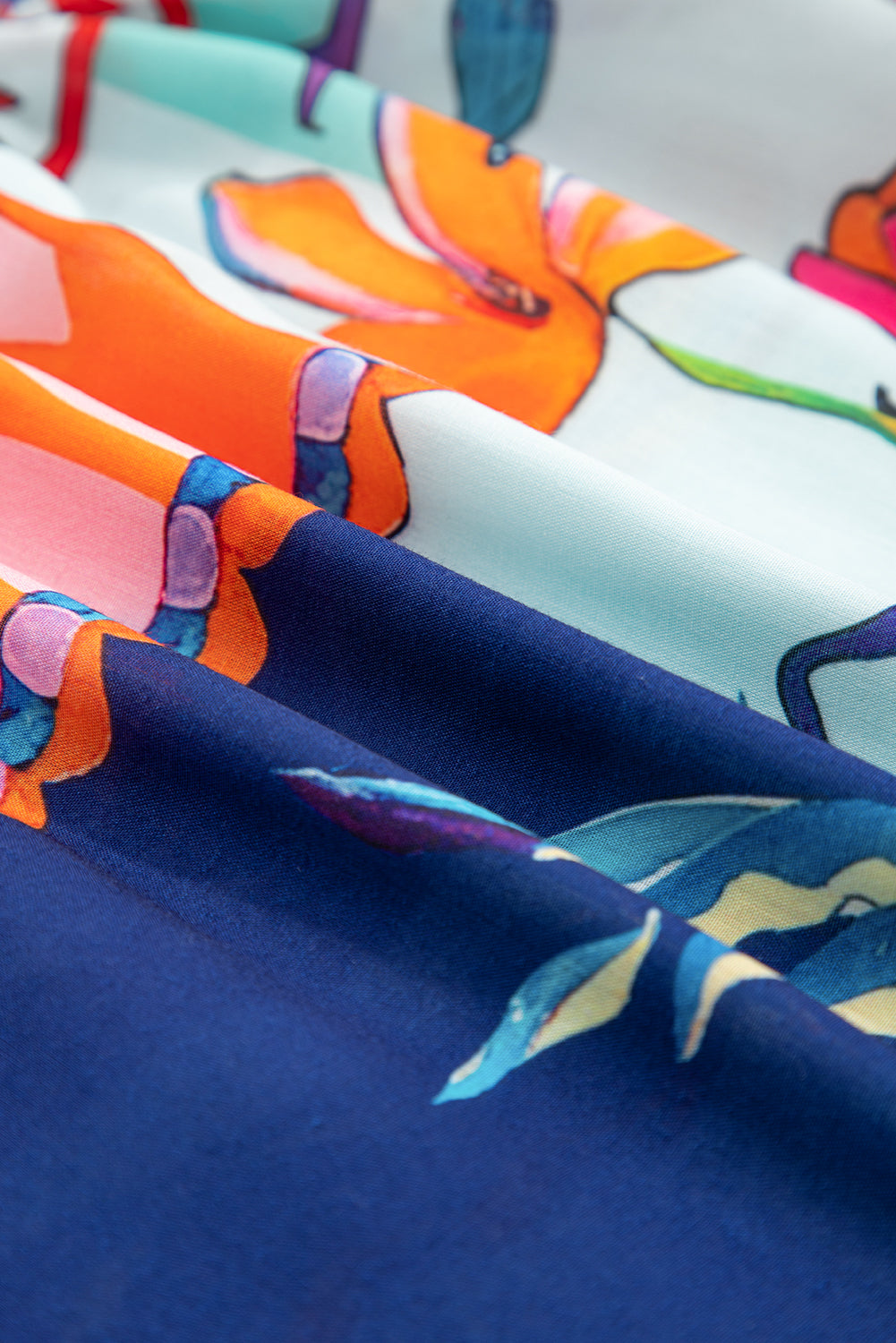 - This tropical blouse embraces the essence of summer for warm-weather styling.