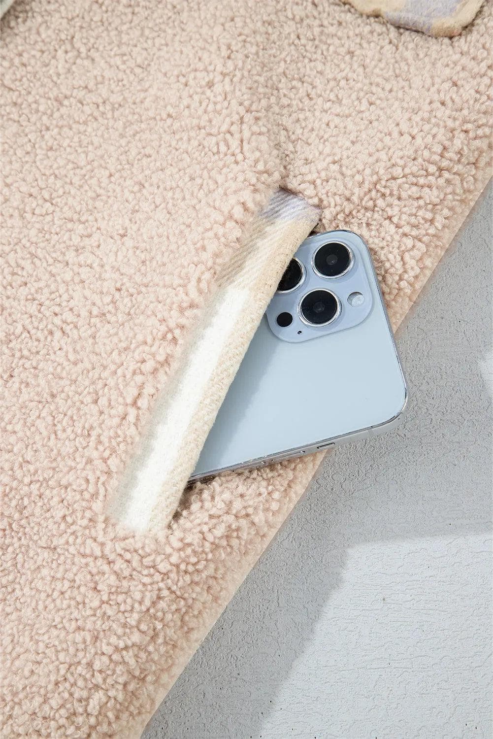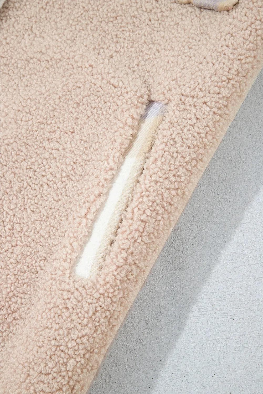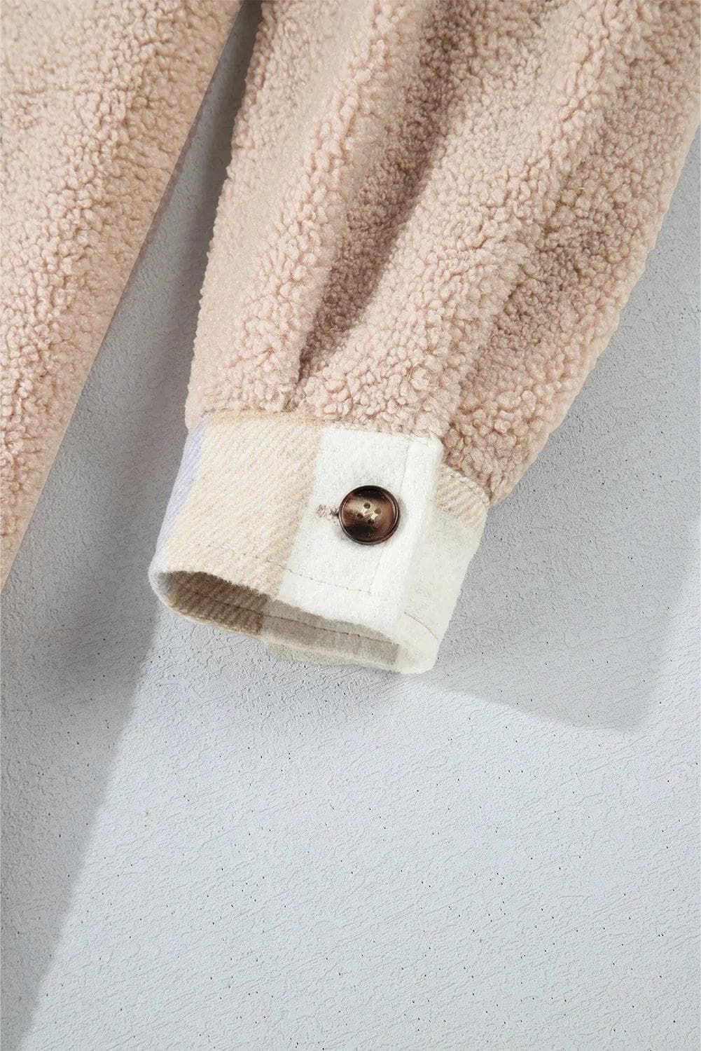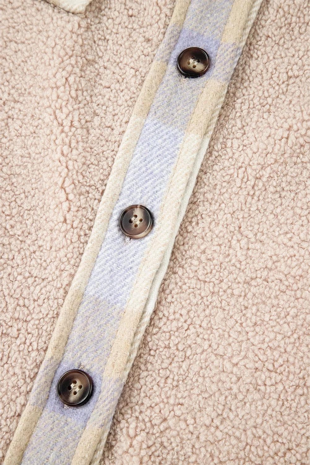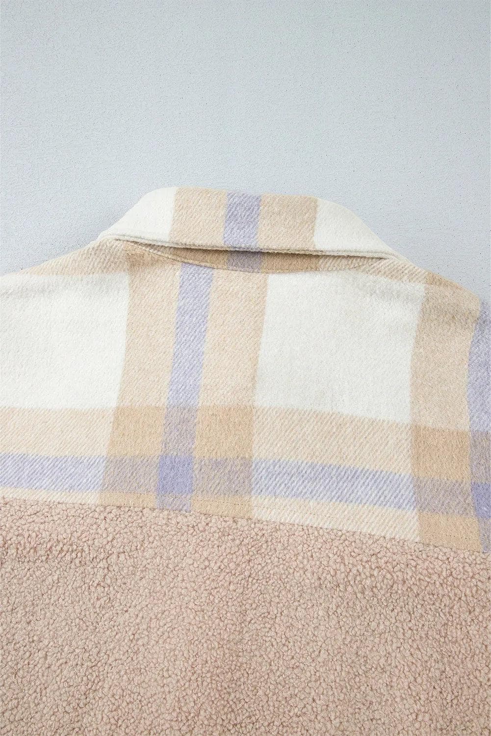 Smoke Gray Plaid Patchwork Collared Button-up Sherpa Long Coat