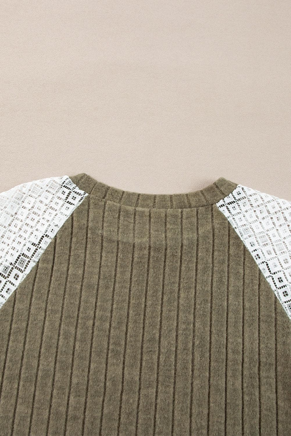 Vineyard Green Plus Size Textured Floral Patchwork Raglan Sleeve Blouse