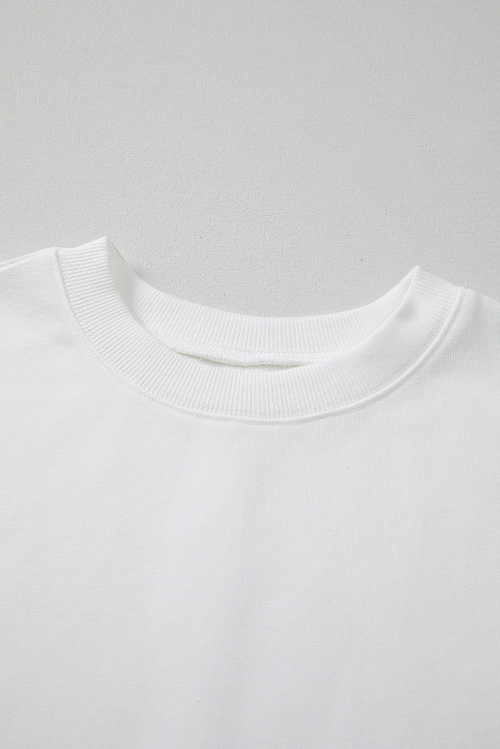 White Floral Dotted Mixed Print Patchwork Sleeve High Low Casual Sweatshirt