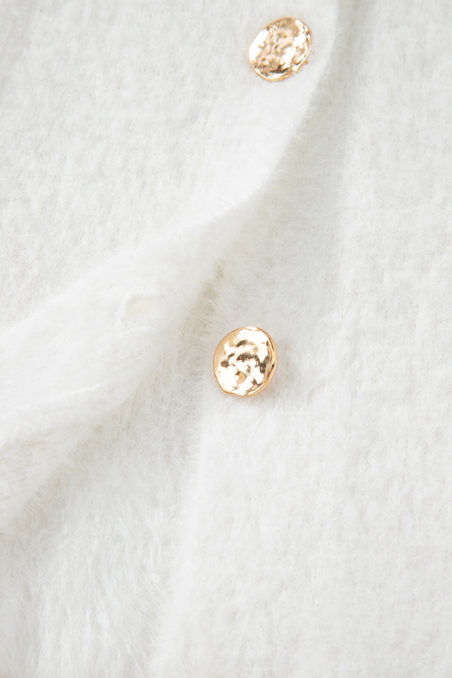 White Fuzzy Buttoned Front Midi Solid Cardigan
