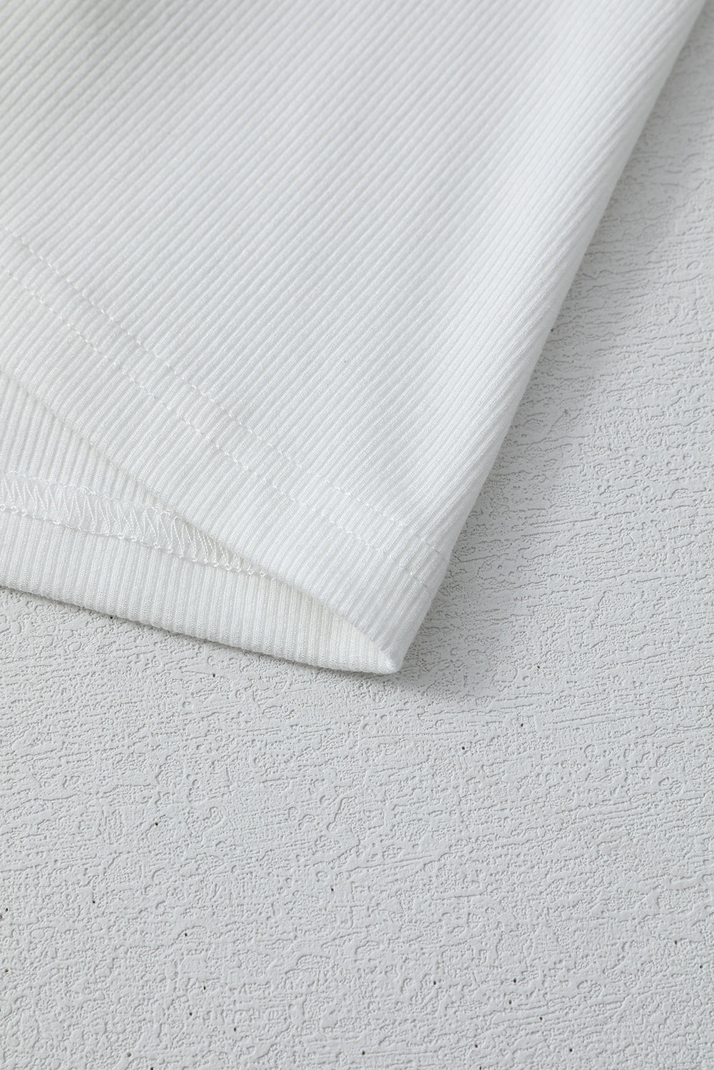 White Lace Floral Patchwork Ribbed Knit Half Sleeve T Shirt