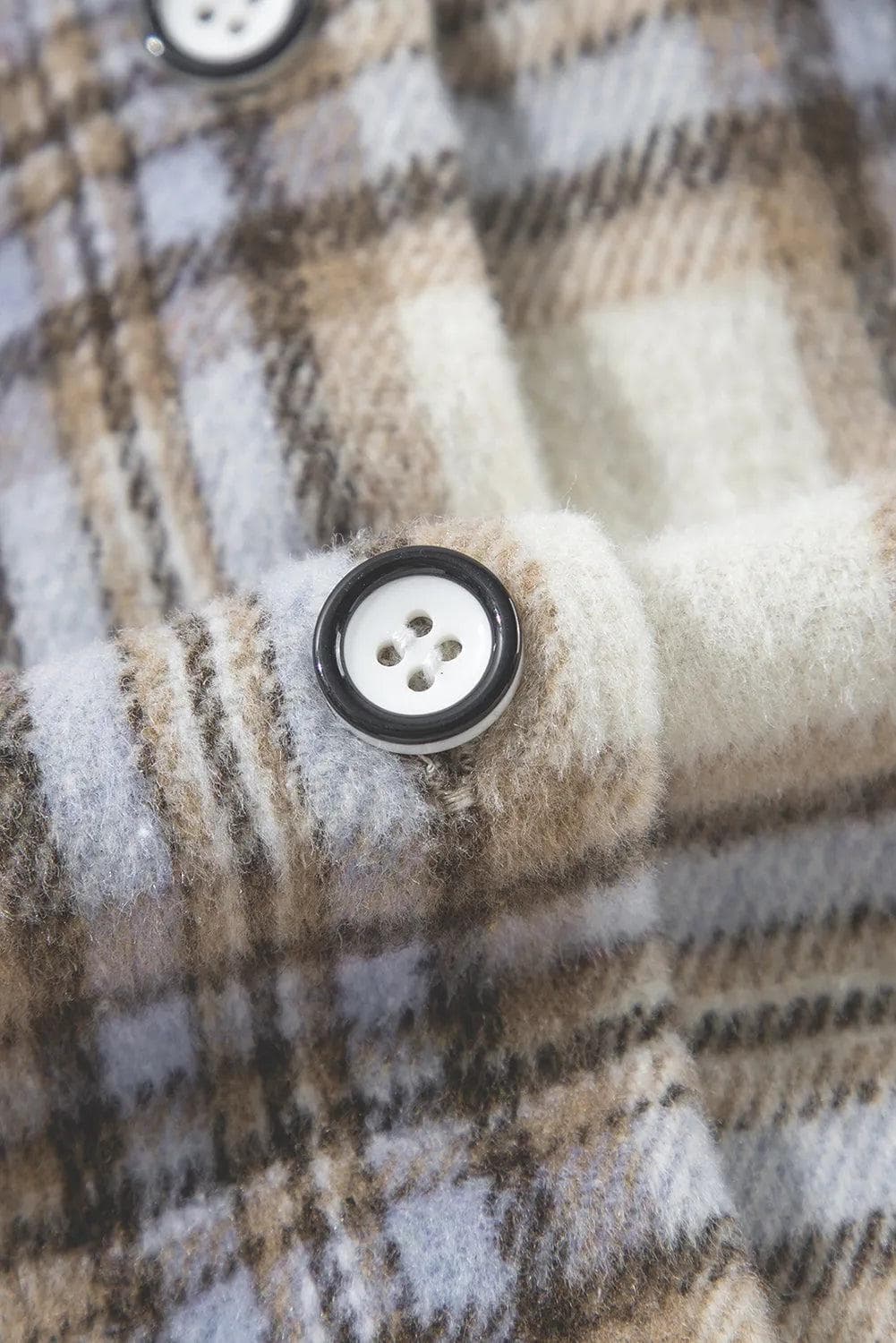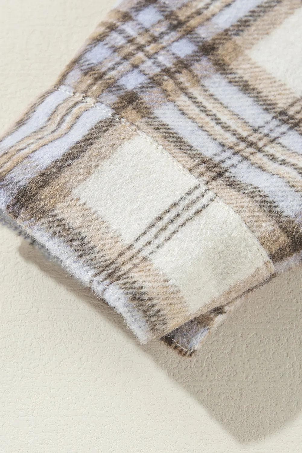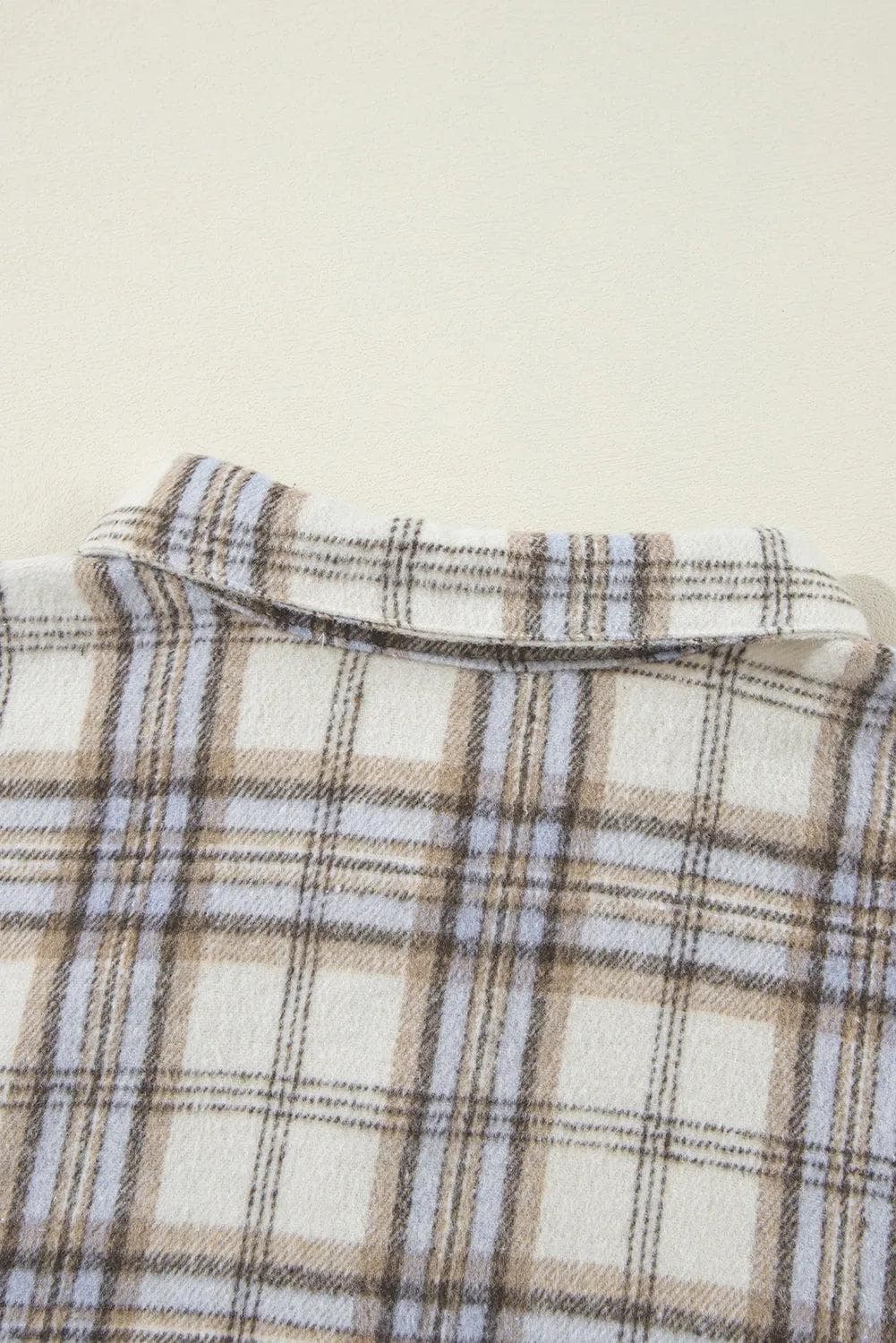 White Plaid Print Tunic Plus Size Shacket with Slits