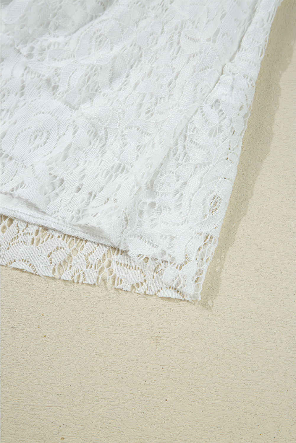 White Tie V Neck Lace Ruffle Detail Long Sleeve Blouse